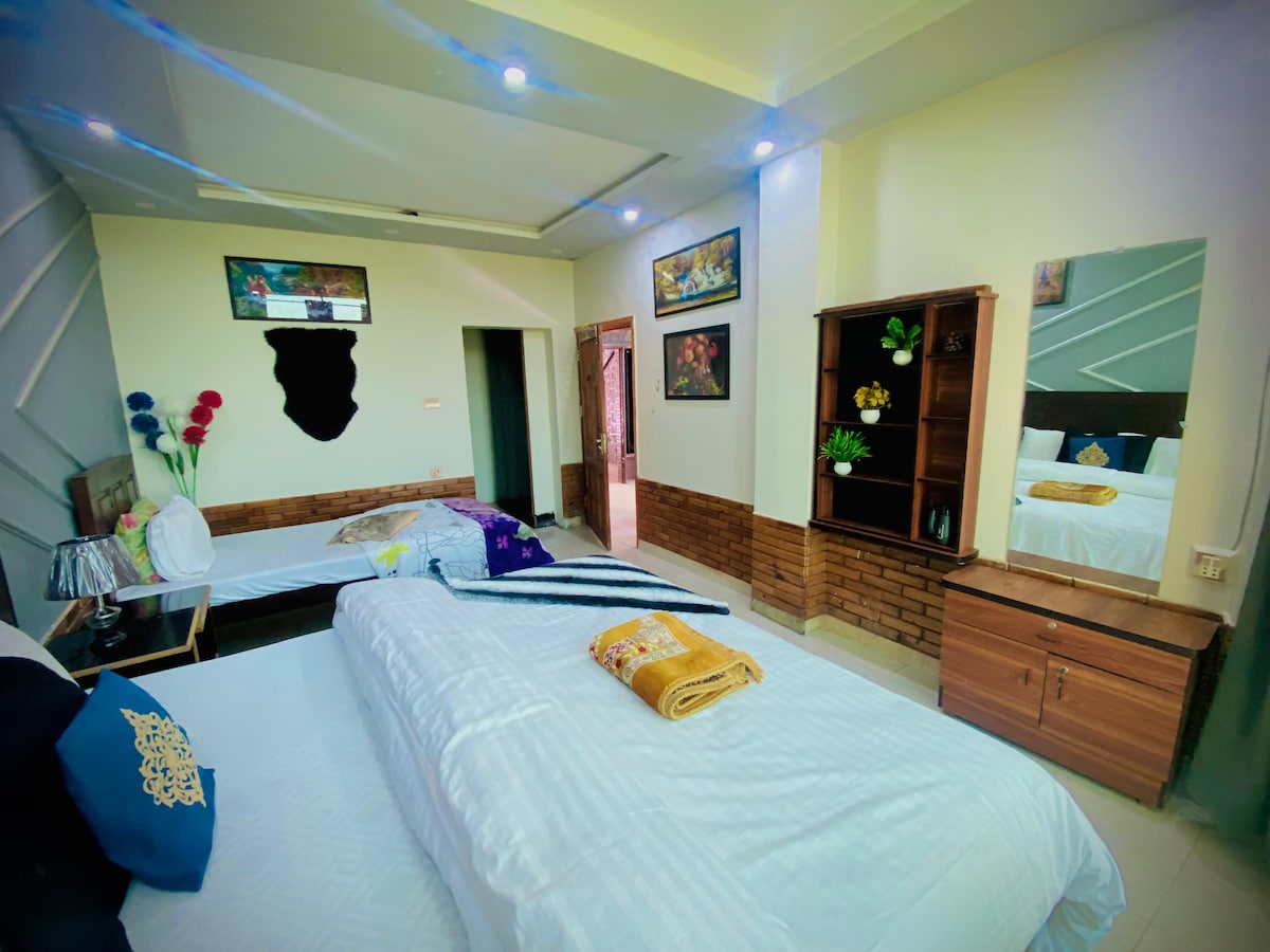 Nook er et kjært familiehjem i Murree, fylt med mange år med kjærlighet, latter og minner. Vi har forberedt det med stor omhu for å tilby et varmt og uanstrengt opphold for gjestene våre. Nyt koselige soverom, pålitelig oppvarming og inverter AC, trådløst nettverk med høy hastighet og en privat terrasse med vakker utsikt over fjellet. The Nook er gjennomtenkt utstyrt og ligger bare en kort spasertur fra Mall Road. Det er vår oppriktige måte å ønske deg velkommen hjem på – perfekt for par, familier og venner.