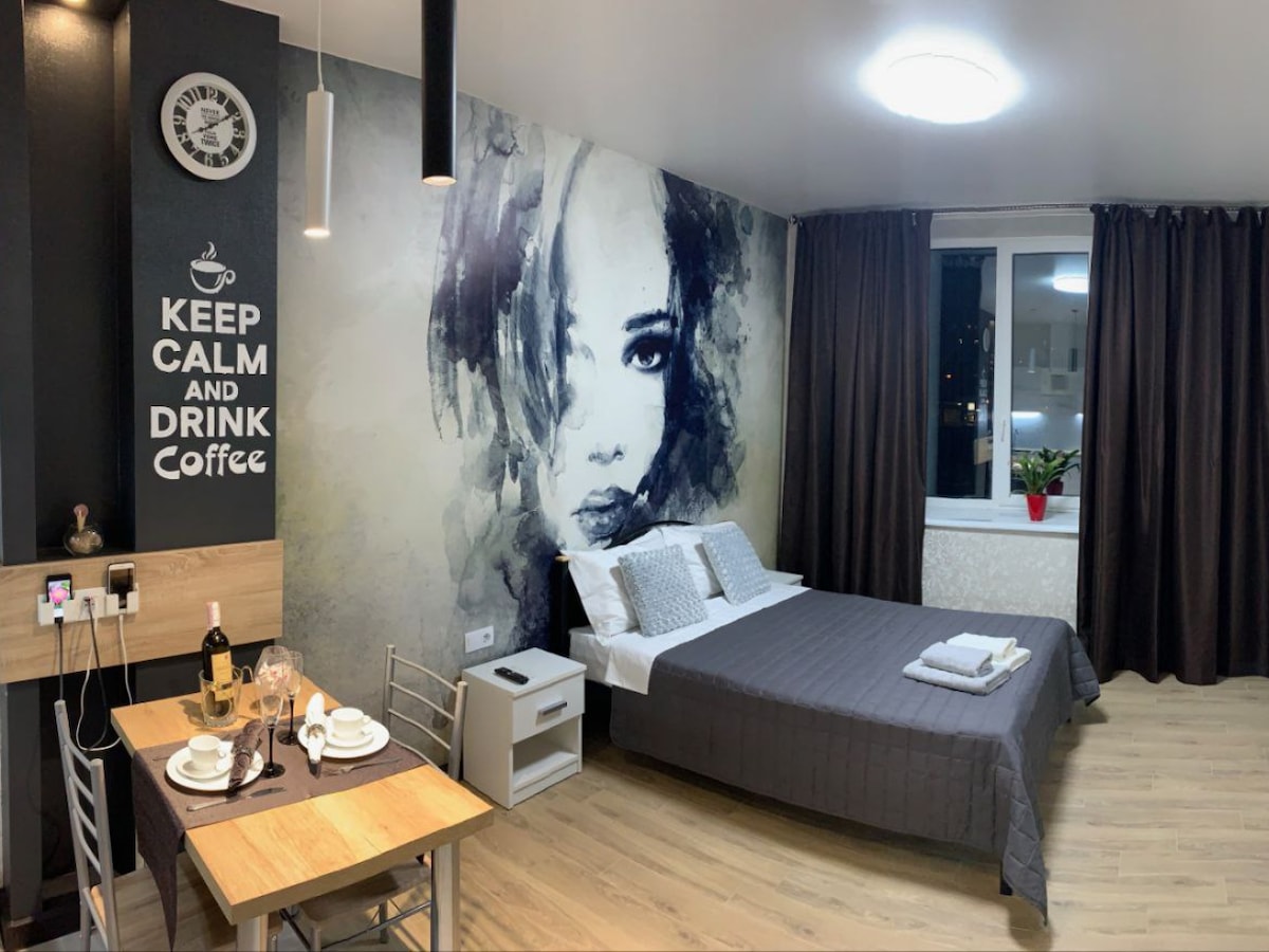Moderne, koselig leilighet i den sentrale delen av Kharkov, på Nauky Avenue ,nær T-banestasjonen 23. august. Luxe class apartment. One-room apartment - studio. original interior design, French panoramic windows, a large loggia with a beautiful view of Kharkov! Du vil få komfort og god hvile!