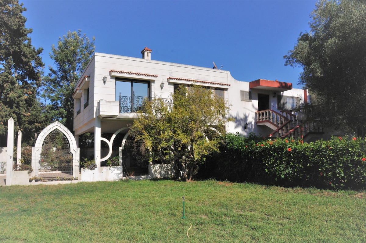 Bo på en stor, komfortabel gård på to hektar i nærheten av Rabat. Villaen er romslig og vennlig, og den tilbyr tre soverom, store, lyse stuer med store buktvinduer og et utstyrt kjøkken. 🌿 Nyt det private bassenget og direkte tilgang til elven for piknik og utendørs spaserturer. Sentralt ❄️ klimaanlegg og klimaanlegg på rommet for ekstra komfort. Perfekt for familier eller venner som ønsker avslapning, natur og autentisitet på landet.