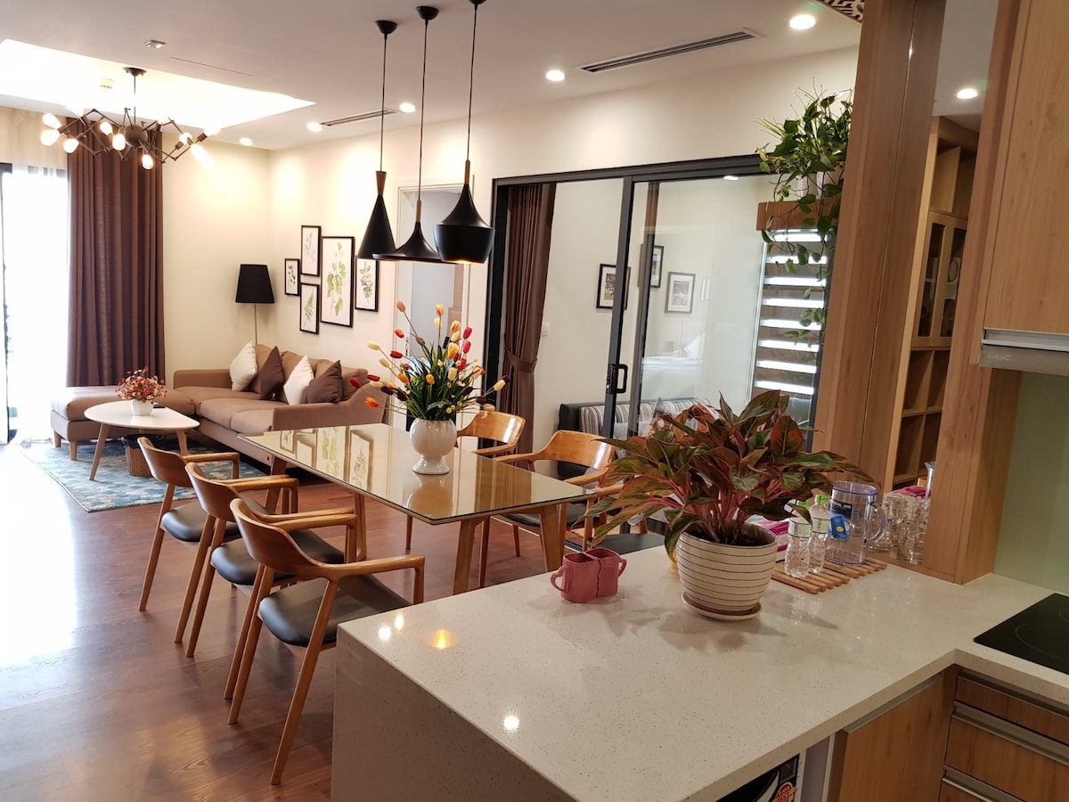 Leiligheten har tre lyse rom og to bad, og har et areal på 132 m² i Vinhomes Royal City. Den er svært godt egnet for familiegrupper eller venner som reiser i forbindelse med jobb. Stuen er romslig, og alle tre soverommene har vakker belysning og utsikt. Jeg er verten og bor her, så jeg kan hjelpe gjestene døgnet rundt når som helst. Vi er glade for å ønske deg velkommen.