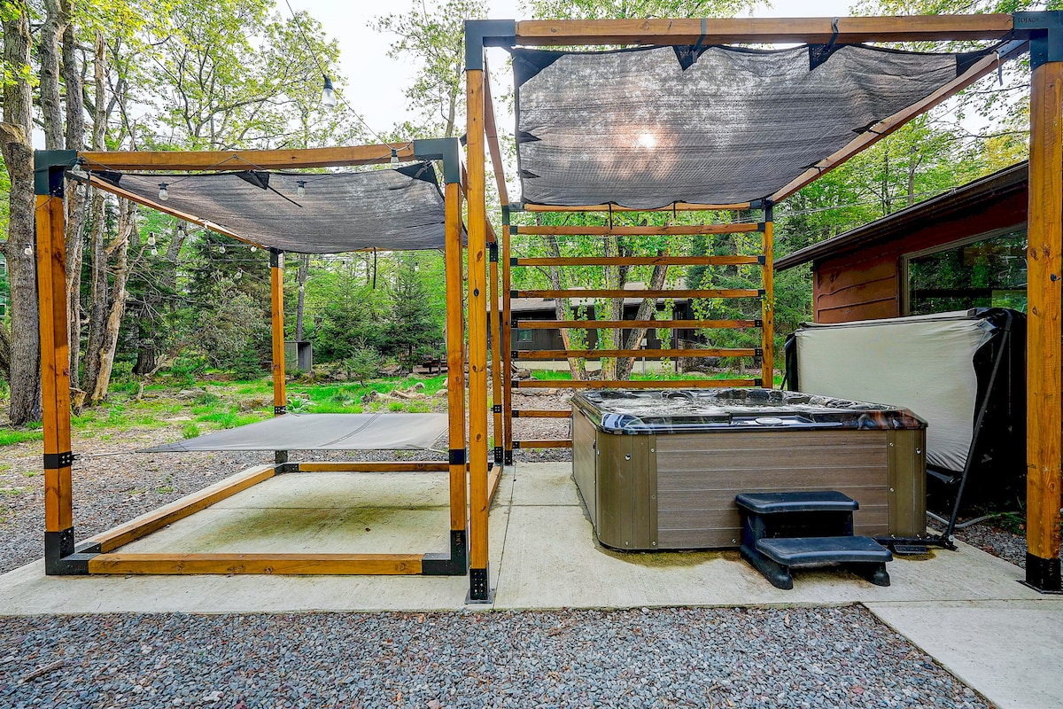 Kom og slapp av på Vista View – en unik, moderne hytte fra 1970 i hjertet av Lake Harmony! Det hevede hjemmet og den store verandaen vil føles som om du bor i et tretopphus. Nyt det private boblebadet med utsikt over skogen, den utendørs branngropen, tilgangen til Lake Harmony & LH Beach og mye mer! Sentralt i Poconos, ligger Lake Harmony mellom Boulder View og Jack Frost Mountain med «Restaurant Row» og Split Rock Water Park rett rundt hjørnet. HØYHASTIGHETSINTERNETT og Netflix er inkludert.