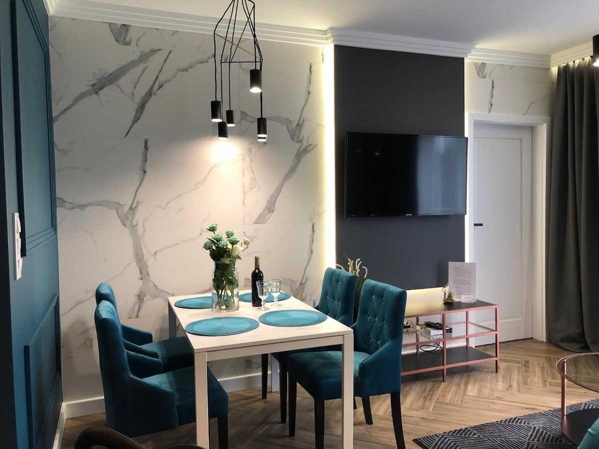 Velkommen til en vakker leilighet med en unik utforming av rommene. Anlegget er ferdig til en høy standard, etter en omfattende renovering, ligger det i sentrum av byen - rett ved siden av markedsplassen, som kan sees fra balkongen og har en flott utsikt :) Det dekker området på: 57 m2, som består av; en stue med spisestue og en funksjonell kjøkkenkrok, 2 soverom i hver med en dobbeltseng, to bad, ett med badstue og dusj, det andre med badekar og en balkong med vakker utsikt.