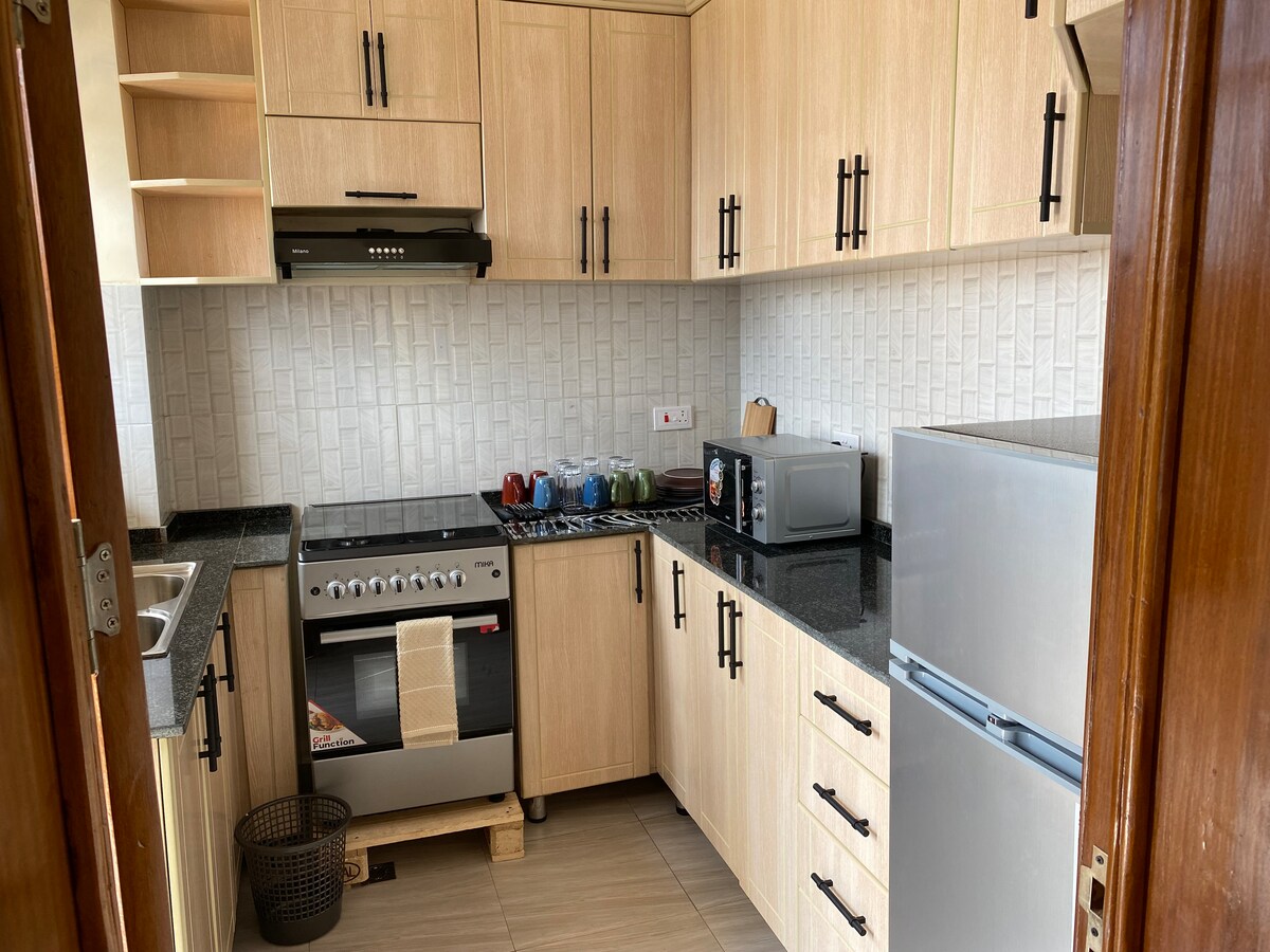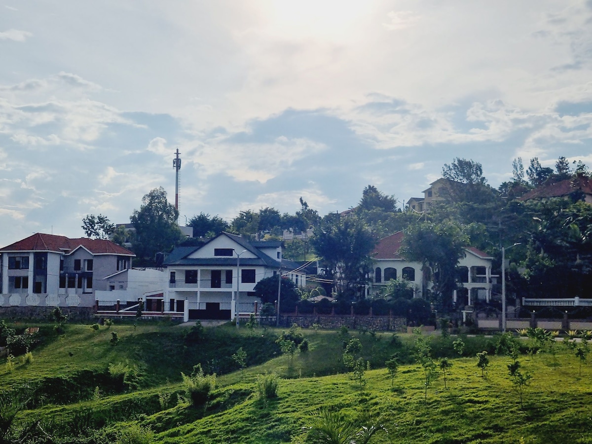 Oppdag drømmeferien din i et nytt, rolig sted med to soverom, som ligger i det beste boligområdet i Kigali (Nyarutarama golfbane), 15 minutter fra flyplassen, i et praktisk nabolag, seks minutter med bil til Kigali Convention Center, fem minutters gange til Brioche Café, (Woodlands, simba) supermarkeder, CaliFitness gym, tre minutter med bil til MTN Center, seks minutter til Kigali Heights, en 58 tommers smart-TV, kabel-TV, Netflix, DSTV, raskt internett. Den ligger på en asfaltert vei.