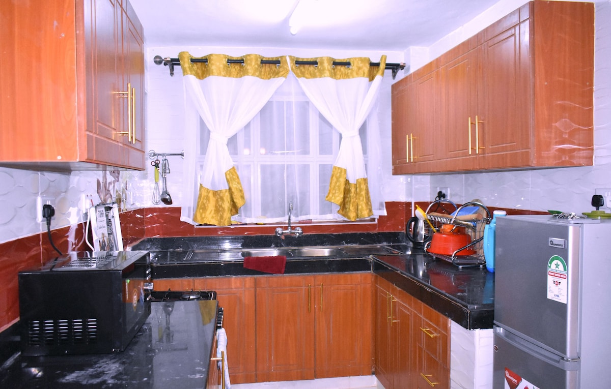 Hele denne stilige leiligheten er moderne, romslig og komfortabel, med ett soverom og eget bad, luksuriøs kingsize-seng, veltalende spisestue, soverom og stue Netflix-TV, balkong, kjøkken og vaskemaskinområde. Alle fasiliteter som tilbys, inkludert ubegrenset raskt trådløst nettverk og forretningsfasiliteter. Beliggende i en rolig, løvrik forstad, men også praktisk i nærheten av Westgate, Sarit og Lavington kjøpesentre, restauranter, forretningsknutepunkter, CBD og noen meters gange unna Westlands natteliv.