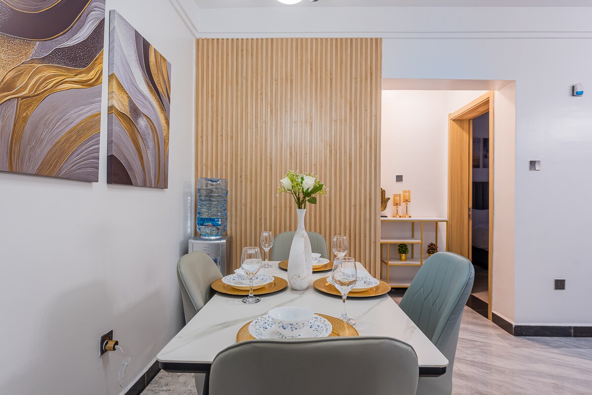 Slapp av på dette unike og fredelige feriestedet med én seng. Det er en helt ny leilighet med én seng;ren med en queen size-seng. Den er utstyrt med utmerkede varme dusjer, komfortable moderne sofaer og internett med høy hastighet. Du finner et godt utstyrt kjøkken, minimalistisk konsept og fantastisk utsikt over byen. Den har en full reservegenerator, et oppvarmet basseng, toppmoderne treningsstudio og lekeområde for barn. Beliggenheten er også utmerket med stressfri transport.