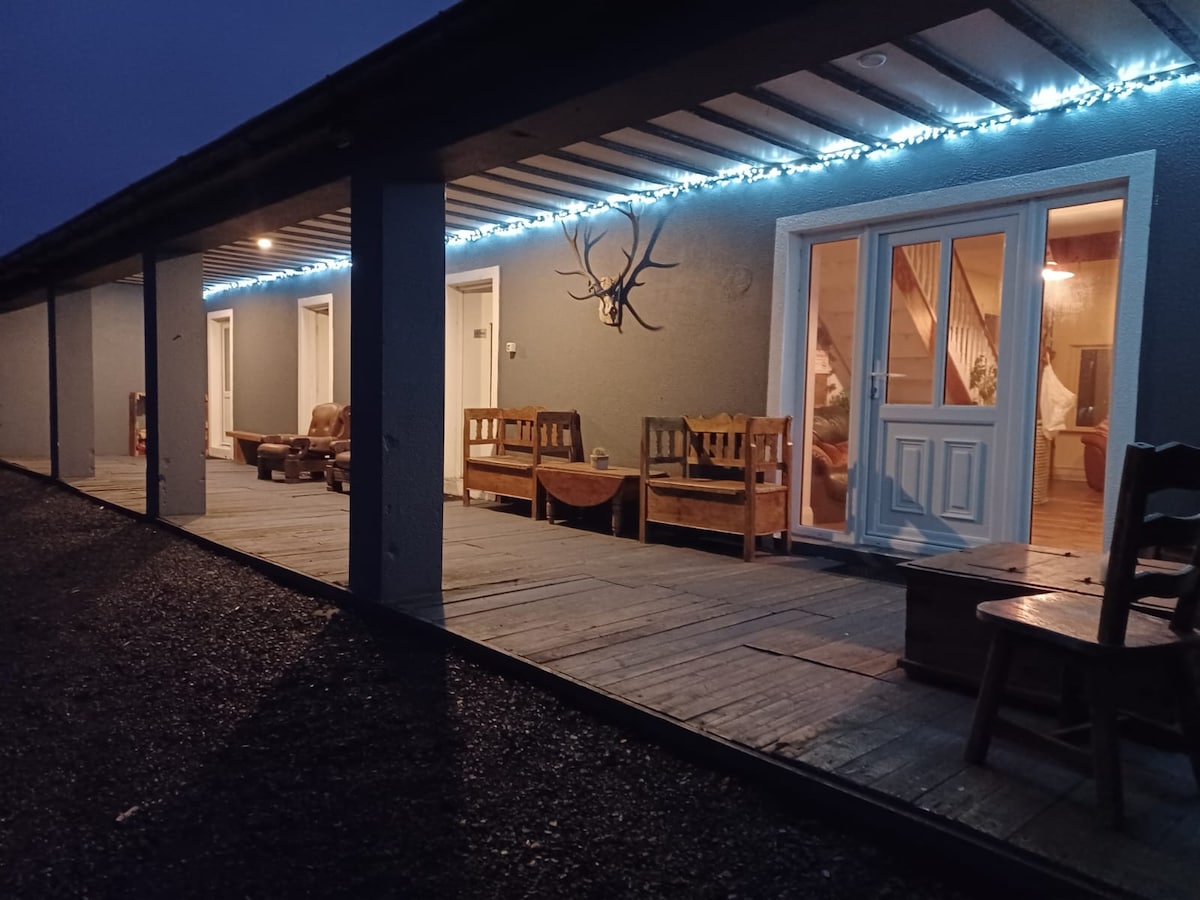 Hytta vår er et tilfluktssted fra tempoet i det moderne livet i utkanten av Connemara og i nærheten av Louisburgh, Croagh Patrick og Westport. Perfekt for grupper av turgåere, surfere eller for å samle hele familien. Hytta har 18 sengeplasser – nytt for 2026 – soverom med seks dobbeltsenger, ett kingsize-seng og ett soverom med fire enkeltsenger. Tre soverom med eget bad. Åtte soverom totalt – tilbyr en veldig komfortabel opplevelse for opptil 18 gjester (alle køyesenger fjernet). Spillrom i hagen bak.