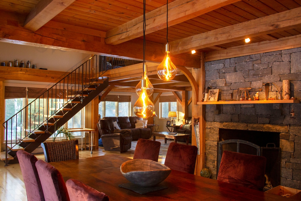 Escape in a beautiful light-filled upscale cabin deep in the woods at Sugar Maple Mountain Retreat. Relax at the end of the day in our hot tub which is shared between our 3 cabins. Steps away from two picturesque lakes, enjoy complimentary seasonal use of our kayaks, paddle boards and snow shoes. Go fishing, biking, hike country roads or trails on the 1275 acres of surrounding preserved land. In winter hop on the VAST trail nearby. 4 WD Required Dec 1- April 15th