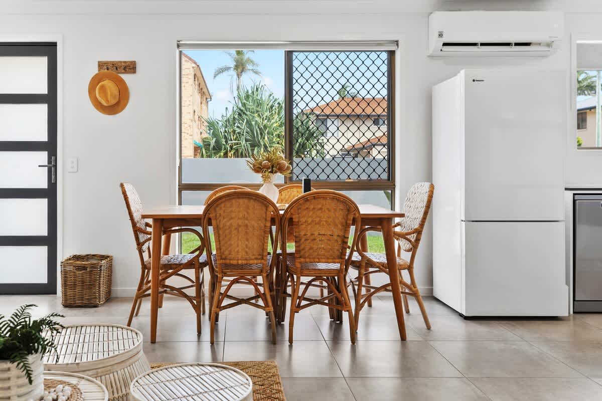 Velkommen til Sunshine Coast-ferien din! Denne renoverte duplexen med tre soverom ligger 50 meter fra Buddina Beach. Den er designet for komfort året rundt, og har klimaanlegg i stuen og hovedsoverommet og takvifter overalt for et komfortabelt opphold. Enten du er her på familieferie, surfer eller vil slappe av, vil du elske den førsteklasses beliggenheten – nær kystvandringer, Pt Cartwright og kaféer. Kawana Shoppingworld minutter unna og Mooloolaba Esplanade en kort kjøretur, alt du trenger i nærheten.