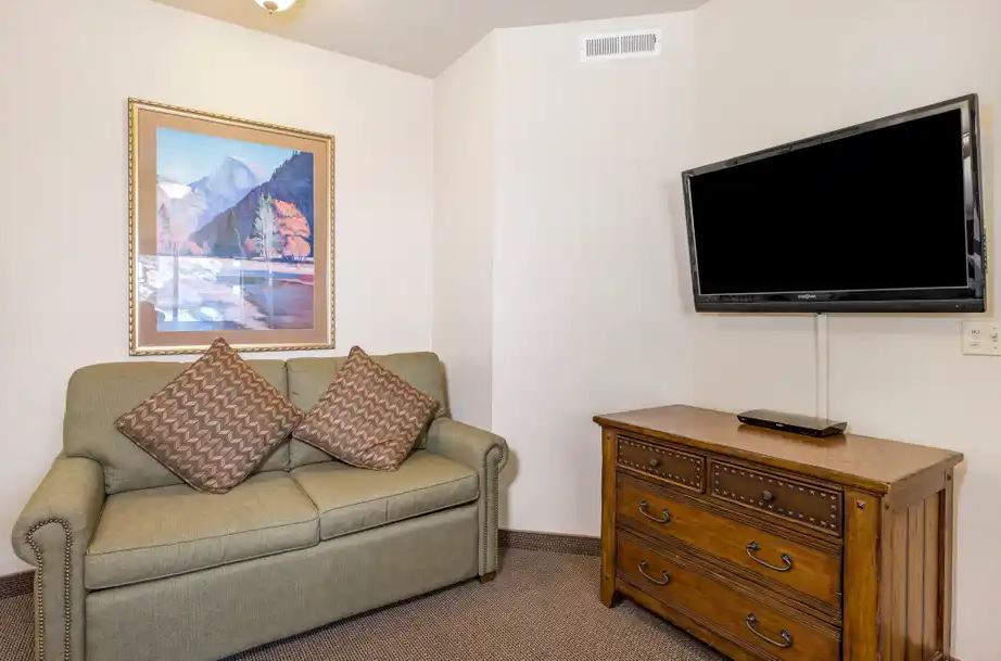 Hotellrom stil enhet med tilgang til alle feriestedets fasiliteter. Dette ligger i feriestedet Ridge Tahoe, og har en king size-seng, fullt bad og kjøkkenkrok (minikjøleskap, mikrobølgeovn, kaffekanne, brødrister). Det er også en sovesofa. Gjester har tilgang til alle feriestedets fasiliteter, inkludert treningsstudio, boblebad, innendørs-/utendørsbassenger, gratis minigolf (sesongbasert) og Skier Express-gondol for å ta deg med til Heavenly 's Stagecoach-heis (sesongbasert). Trådløst nettverk er inkludert.