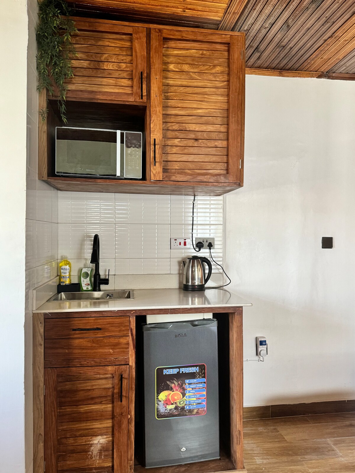 Velmøblert og vedlikeholdt feriehytte i et sikkert privat område i Mbezi Beach Area, bare 1,2 km fra Bagamoyo Road. Hus med ett soverom (én queensize-seng + én sovesofa), ett innendørs bad pluss et reservert utendørs gjestebad. 50 tommers TV med Smart box, vaskemaskin, varm dusj, gratis trådløst nettverk, aircondition, fullt utstyrt og funksjonelt kjøkken. Ideelt for et par og maksimalt ett barn. Parkeringsplass, fullt sikret med overvåkingssystem døgnet rundt og sikkerhetsvakt på stedet. Nødstrømgenerator.