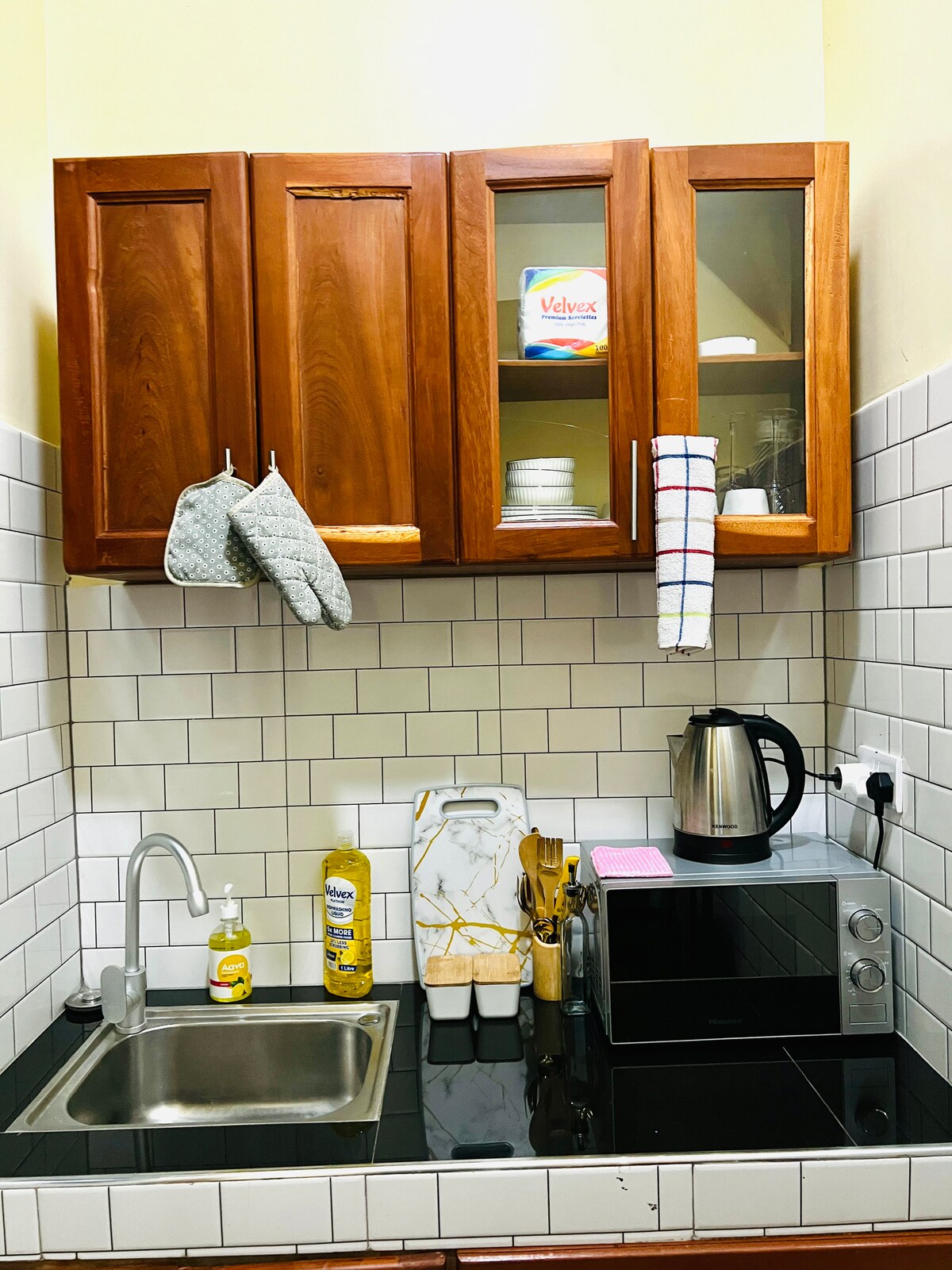 Moderne og koselig ettromsleilighet i Makumbusho, Dar es Salaam. Nyt et stilig opphold med elegant innredning, en komfortabel stue, en smart-TV med Netflix, trådløst nettverk med høy hastighet og et fullt utstyrt tekjøkken. Enheten har også en vaskemaskin og et strykejern for deg. Plassert i et trygt og fredelig nabolag bare minutter fra Coco Beach, Mlimani City, kaféer og supermarkeder. Perfekt for par, forretningsreisende og gjester som reiser alene og som ønsker komfort og privatliv.