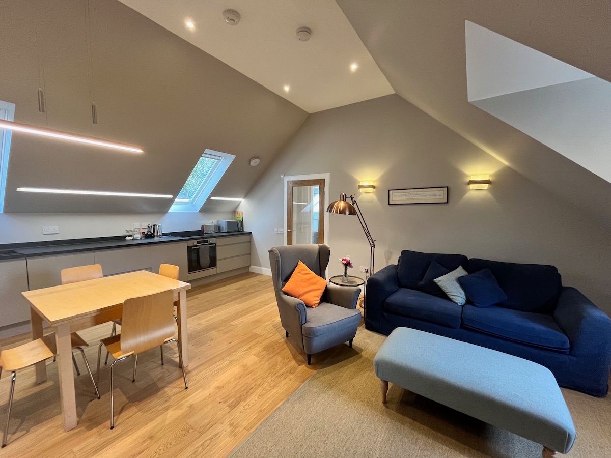 Denne leiligheten med to soverom er den vakkert ombygde tidligere Great Hall of Dollarbeg Castle. Dollarbeg Castle ble bygget i 1890, og var den siste bygningen i gotisk baronialstil av sitt slag som noensinne ble bygget. Vakkert restaurert i 2007 til de aller høyeste standarder, ble det omgjort til ti luksuseiendommer, hvorav den ene er en ombygging av den opprinnelige «Great Hall» med hvelvet tak og majestetisk utsikt over den formelle tomten mot Ochil Hills i det fjerne.