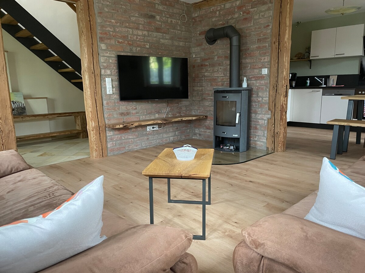 Mit Liebe zum Detail, haben wir dieses über 100 Jahre alte Haus von Grund auf renoviert. Wir haben so viel wie möglich von den alten Materialen wiederverwendet oder mit natürlichen Materialen gearbeitet, wie z.B. Lehmputz, Möbel aus Holz im Eigenbau, das Waschbecken wurde von mir handgetöpfert und auf eine altes Nähmaschinengestell montiert. So haben wir versucht, diesem Haus seinen ganz eigenen Charme und Charakter zu geben. Wohnfläche ca. 120 qm Grundstück ca. 600 qm