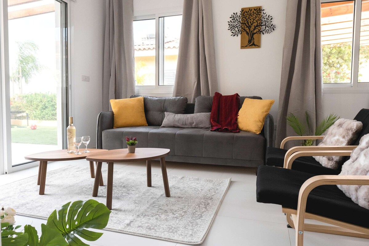 Våkn opp til rolige morgener, da solen maler horisonten i gull. Vår eksklusive villa ønsker deg velkommen til en verden av ro, hvor tempoet i livet bremser ned og stresset forsvinner med hvert åndedrag. Slapp av ved evighetsbassenget, Kypros naturlige skjønnhet strekker seg foran deg. Når skumringen faller på, slå av lys og la stjernene lyse opp himmelen. Bare en hvisking unna Middelhavets fantastiske strender, er villaen vår ikke bare et tilfluktssted – det er et fristed for uforglemmelige opplevelser