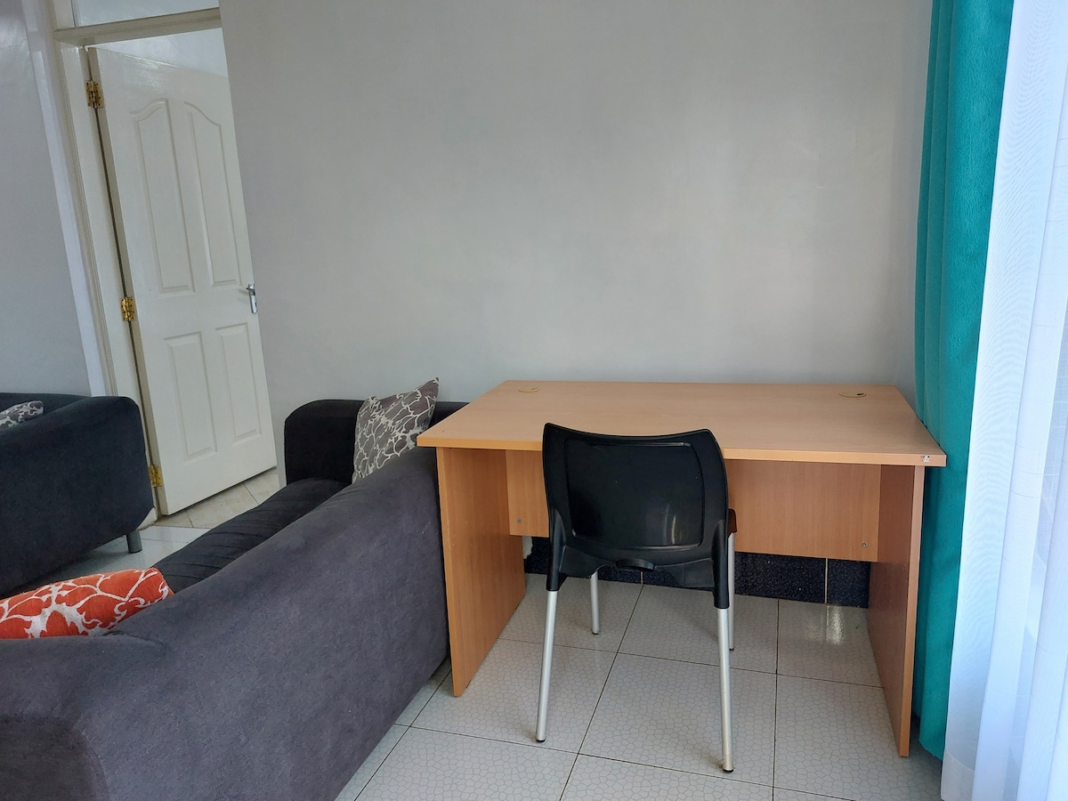Nyt en stilfull opplevelse på et sted med sentral beliggenhet, tuffoam Plaza. Det er fire minutters gange til West End kjøpesenter, som huser Java, Woolworths, Acacia Premier Hotel og billettkontorer, fem minutter med bil til Impala Park Sanctuary, syv minutter med bil til Dunga-stranden. Leiligheten ligger også på et trygt sted med sikkerhet rett bak Tuffoam Mall ved siden av Milimani High Court. Den har en reservegenerator og tilgang med heis til femte etasje.