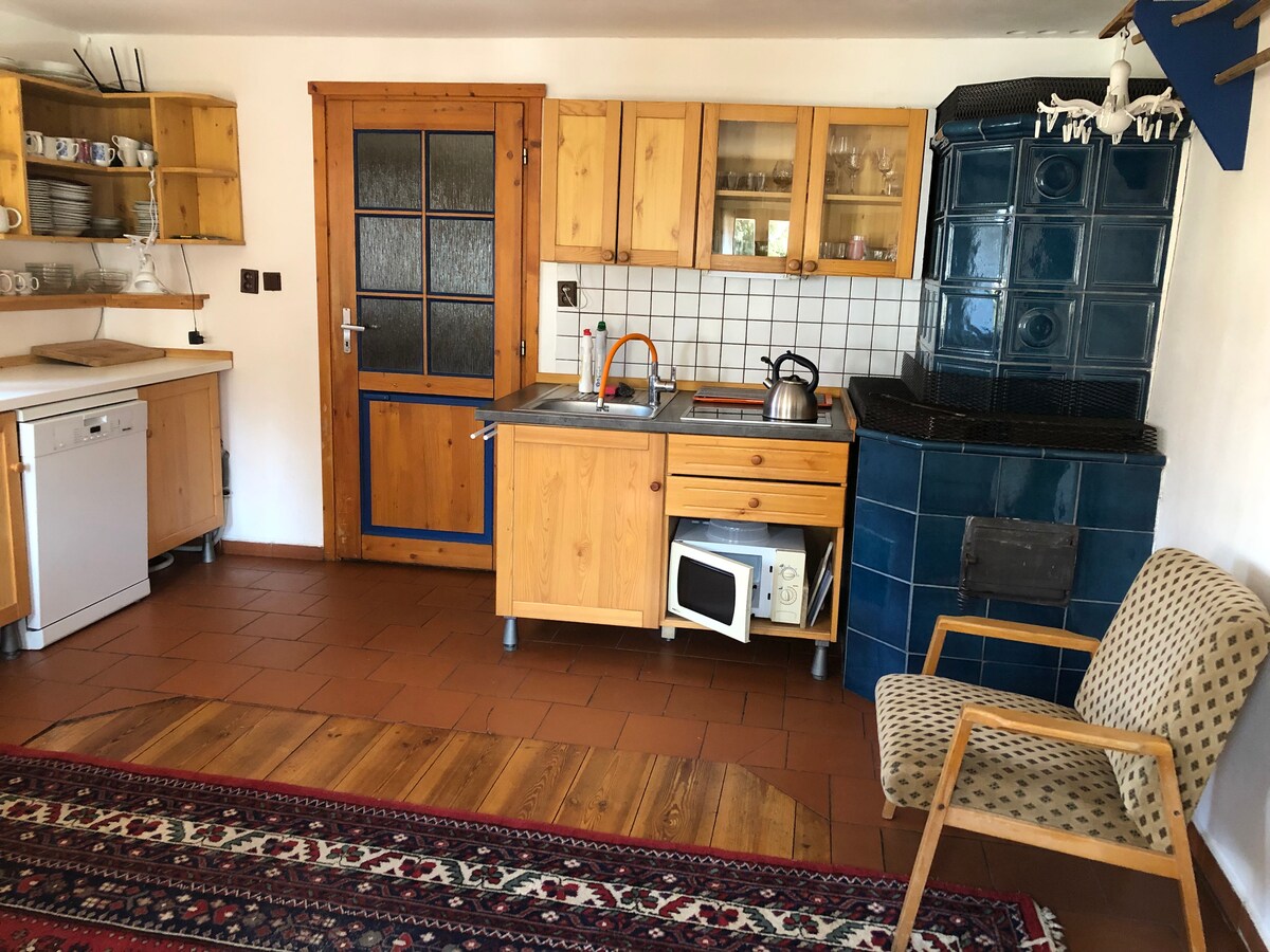 Hus med lounge og peis, ved skogen, Šumava