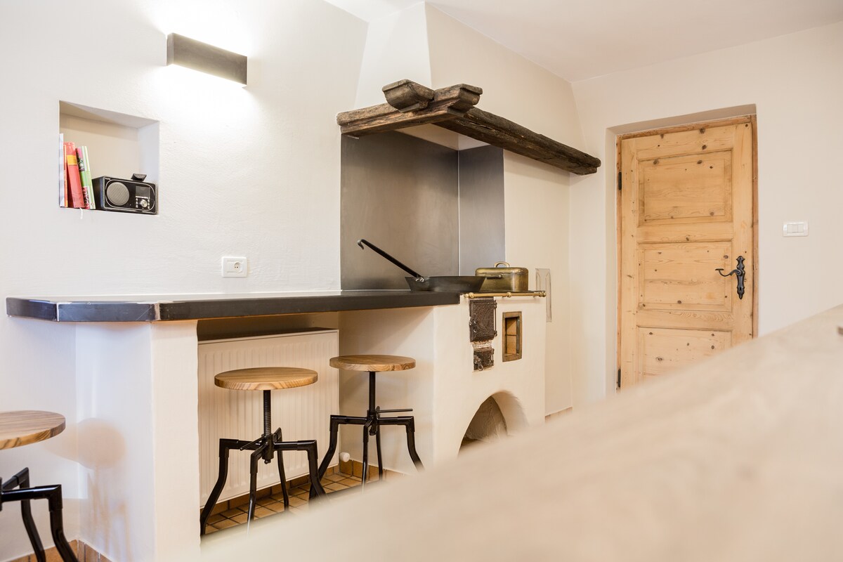 Nydelig leilighet innredet på tradisjonell måte for å sikre den sanne atmosfæren til gården som den var, men med alle moderne bekvemmeligheter. Svært funksjonelt kjøkken, oppvaskmaskin, stue med sovesofa, to dobbeltrom, bad og ekstra bad. Fantastisk privat terrasse vendt mot sørvest, med utsikt over Bolzano-dalen og en utsikt uten sidestykke! Hunder er velkomne, vi ber om et tillegg på € 15, - per natt som skal betales ved avreise.