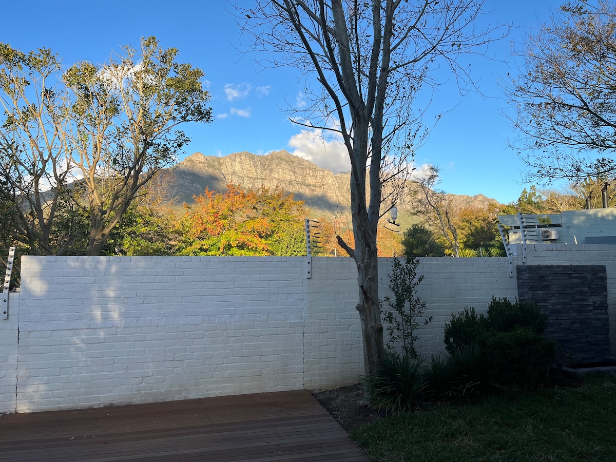 Gjesteleiligheten har egen inngang. Den består av et soverom med en queensize-seng og komfortabel stol, et tekjøkken, ingen strømavbrudd, privat terrasse og hage, et separat bad med dusj og toalett. Det er det perfekte stedet for forretningsreisende eller turister som ønsker å utforske vinmarkene. Terrengsykler og turstier ligger innenfor gangavstand. Fem minutter fra sentrum i den historiske gamlebyen Stellenbosch, to golfklubber og 25 minutter fra stranden.