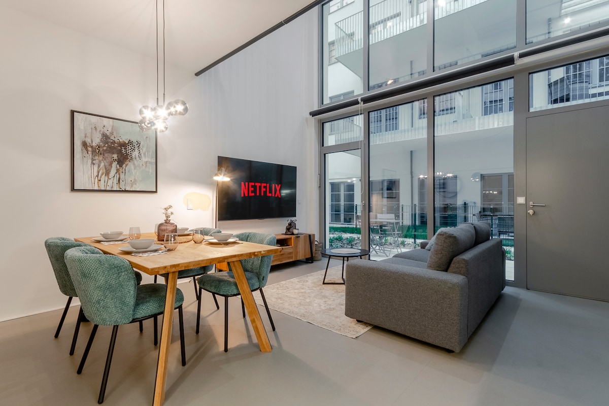 Blackriver Loft Vienna – ditt stilige hjem for familieferier, by- eller forretningsreiser. Den er åpen, koselig og oversvømmet av lys – perfekt plassert mellom sentrum og Schönbrunn-palasset. Perfekt for å nyte rolige kvelder etter en flott dag i byen. Kombinasjonen av messing, stål og tre avrundes av grønne planter. Fra design til implementering kommer interiøret helt fra vårt wienske håndverksverksted, som vi er veldig stolte av.