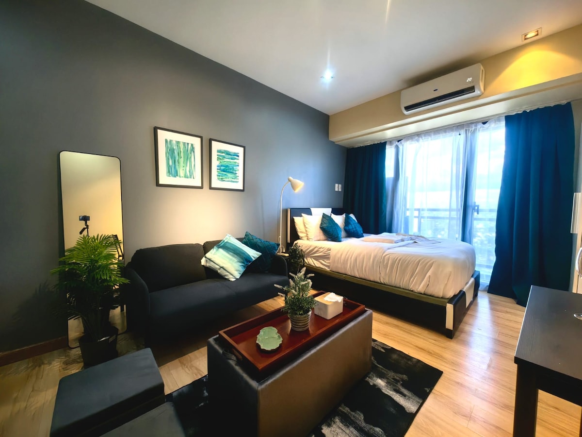 Bo i en moderne leilighet på Knightsbridge Residences, Makati – ideelt for par, alenereisende eller forretningsreisende. Funksjonene inkluderer en queensize-seng, raskt trådløst nettverk, smart-TV med Netflix, fullt utstyrt kjøkken og en balkong med utsikt over byen. Nyt GRATIS premiumfasiliteter: basseng, treningsstudio, badstue, arkade og mer. Gå til Rockwell Power Plant Mall, Century City og Poblacion natteliv. Perfekt for opphold eller jobbturer.
