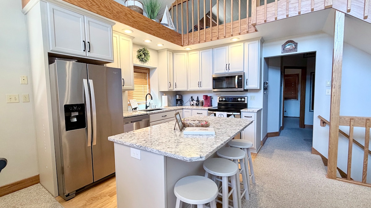 Hideout on Ridgeway, et fredelig sted å komme seg vekk til, gjemt i naturen, men likevel i nærheten av alt du kom for. Fem minutter til Gavins båtrampe på Lewis & Clark Lake. Dette romslige tilfluktsstedet er perfekt for dager ved innsjøen, familiesammenkomster og helger med venner. Drikk kaffen din på den avskjermede verandaen, kos deg ved peisen eller gjør deg klar for filmkveld på 75-tommers TV-en på loftet. Hjemmet er fullt utstyrt – sengetøy, kaffe og nødvendigheter til matlaging er tilgjengelig – slik at du kan ankomme, pakke ut og slappe av.