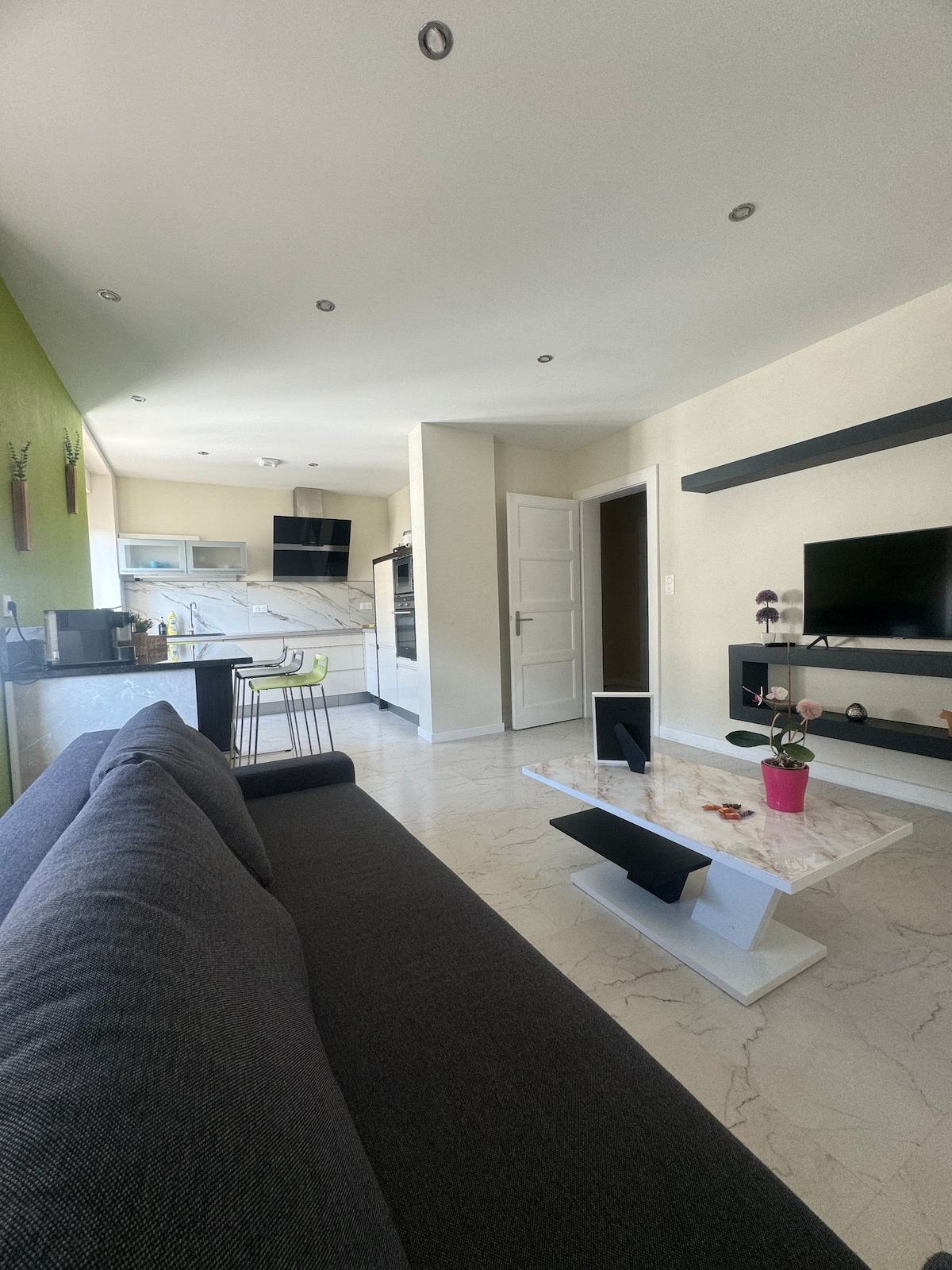 Nyt denne romslige leiligheten på 73 m2 i et leilighetskompleks med 4 leiligheter med 2 soverom , stor terrasse og gratis parkering Utstyr; IPTV ( Netflix , Bein etc ) TV 107 cm, Xbox, Wifi, Squeegee, crunch og vaffel maskin, Senseo I sentrum av byen, vil du dra nytte av alle lokale butikker, 10 min fra Thionville, 15 min fra Luxembourg, 25 min fra Metz Vi ses snart, Matthew.