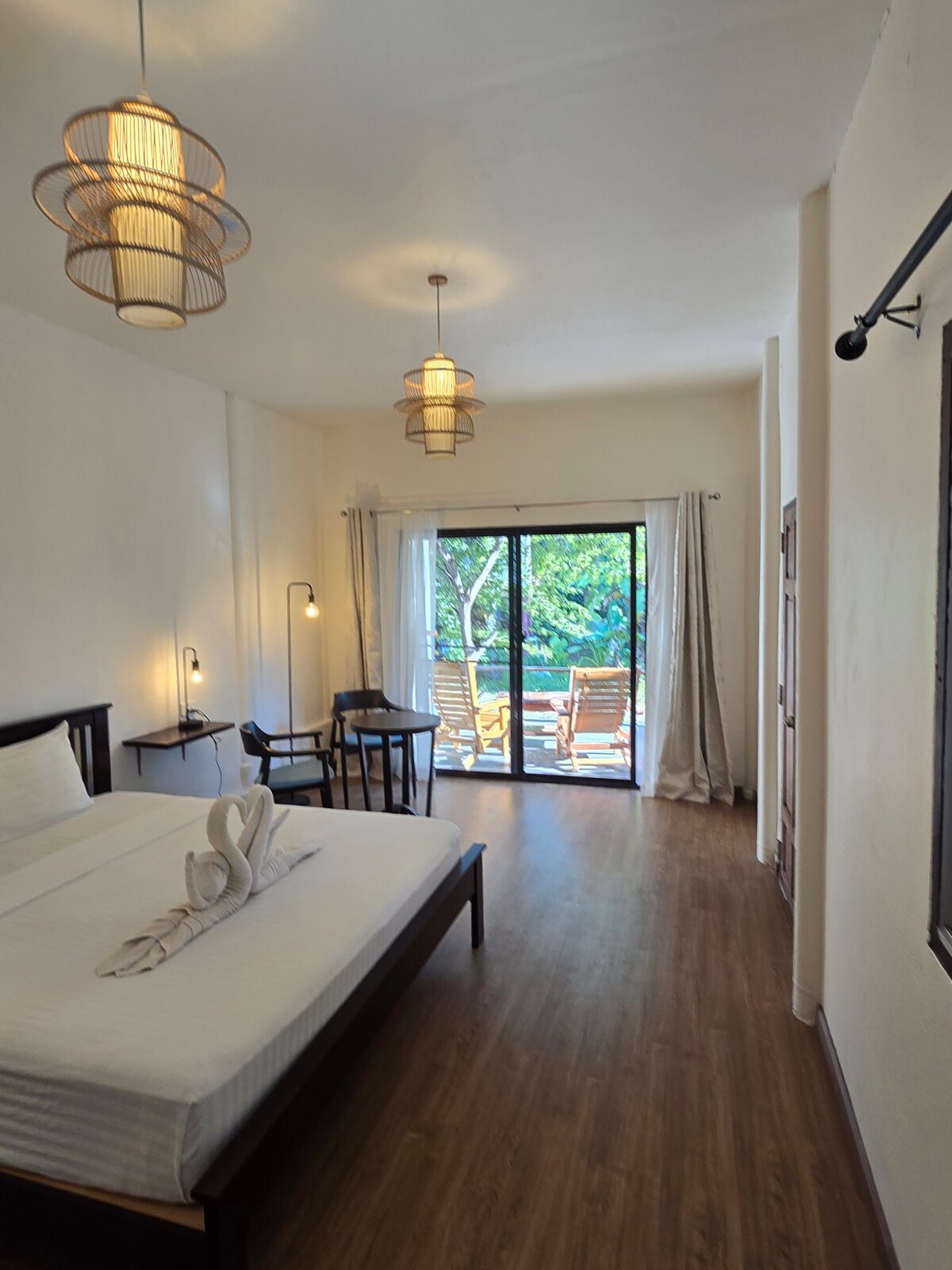 De splitter nye, moderne bungalowene våre ligger bare 200 meter fra stranden på Koh Lanta. Hver bungalow har klimaanlegg, rask trådløs nettverkstilkobling, eget bad, komfortabelt sengetøy og en koselig terrasse å slappe av på. Området er rolig og fredelig, men likevel bare en kort spasertur fra restauranter, butikker, scooterutleie og stranden. Perfekt for par, alenereisende og alle som leter etter et rent og komfortabelt opphold nær havet.