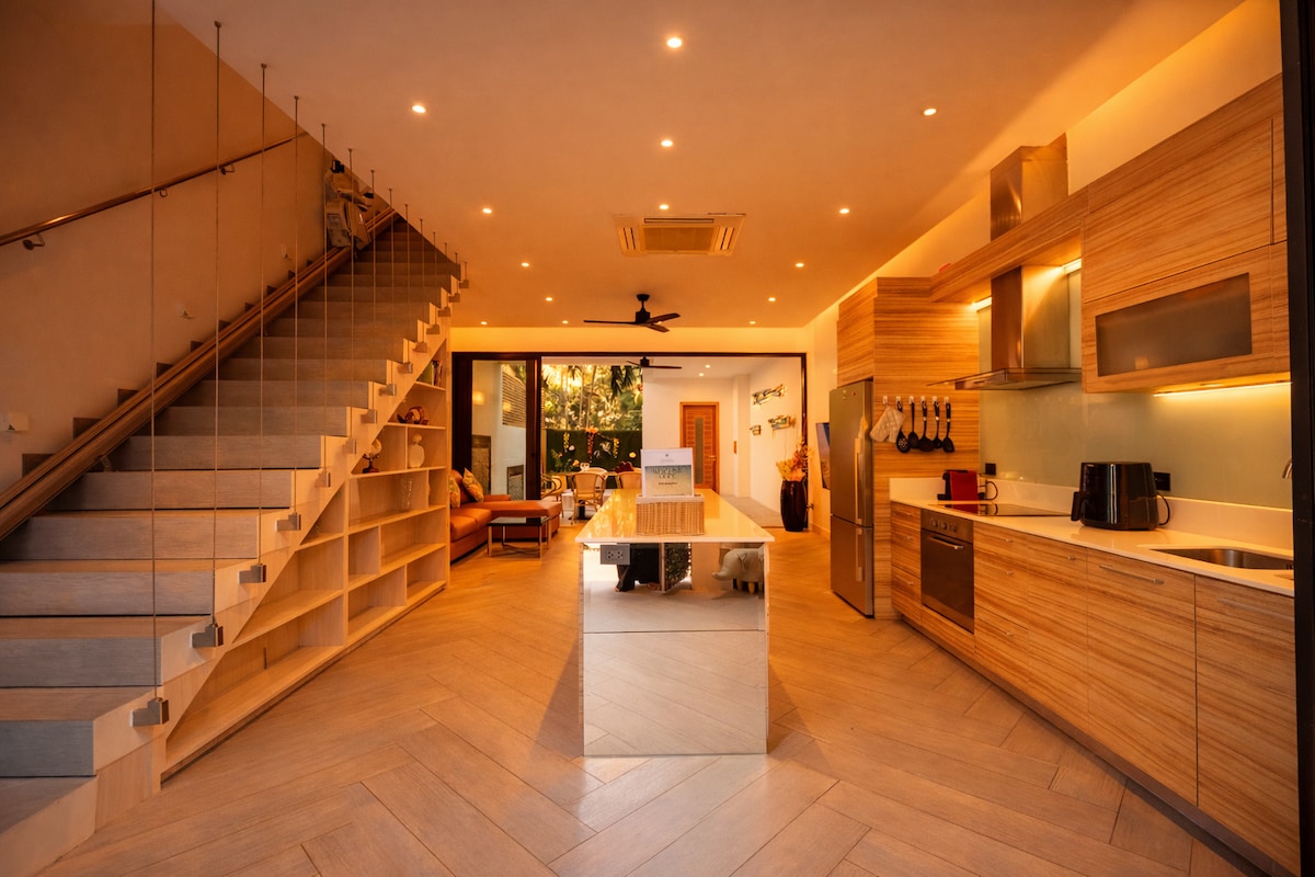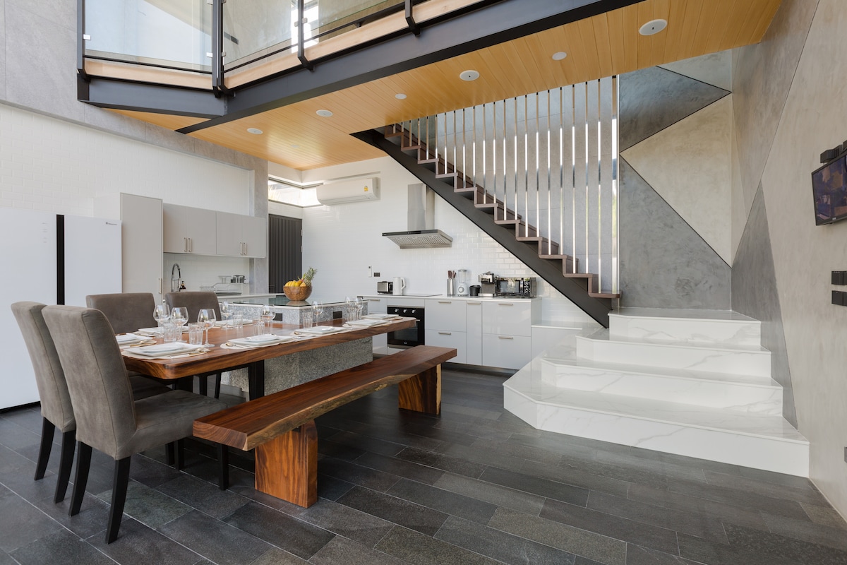 Stikk av til drømmeferien din i den luksuriøse villaen vår med fire soverom, et fantastisk saltvannsbasseng og et strandområde som er perfekt for barn. Denne moderne villaen ligger bare fem minutter fra strendene Rawai og Nai Harn, i et privat og rolig boligområde i nærheten av butikker, hvor du finner restauranter, supermarkeder og massasjer. Perfekt for familier eller venner som ønsker avslapning, og den tilbyr en sømløs blanding av luksus og bekvemmelighet. Ditt ideelle opphold starter her!