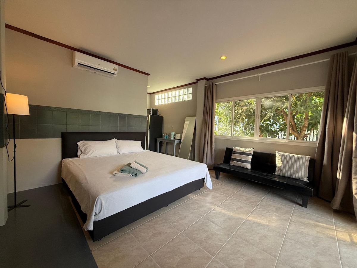 Suan Residence er det rette stedet for naturelskende mennesker som ønsker å slappe av. Stranden og sentrum ligger på avstand (ca. 7 minutter). Hver bungalow er privat, så du kan få kvalitetstid med den du elsker. Du våkner med fuglene som synger og tar morgenkaffen, omgitt av fjell og kokosnøttrær. Om kvelden kan du se fantastiske solnedganger fra svømmebassenget ditt. Det er et miljøvennlig prosjekt. Vi bestemte oss for ikke å sette AC, men isolasjon i stedet for å redusere varmen.