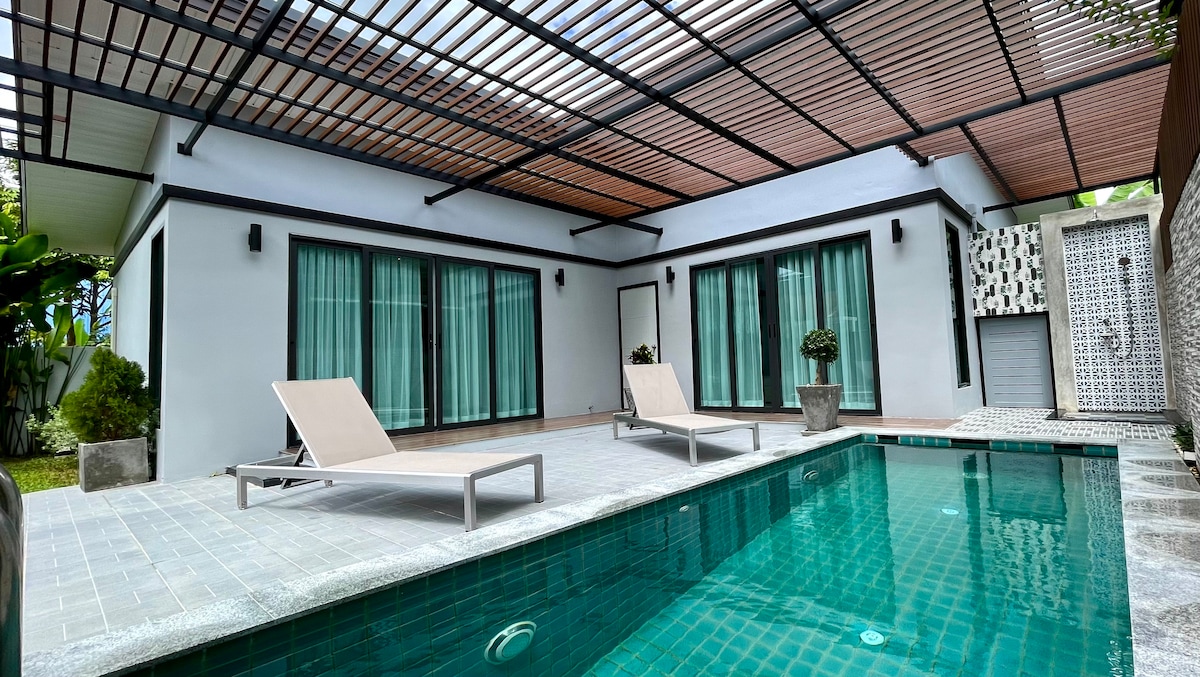 Velkommen til ditt familievennlige private spa i Phuket! Dette hjemmet har fire soverom og tre bad, samt et moderne kjøkken. Nyt et vakkert friluftsliv med et fantastisk 9 m x 4 meter basseng, sauna, isbad, alt omgitt av en frodig tropisk hage, perfekt for avslapning og moro. Det allsidige fjerde soverommet kan fungere som en koselig andre stue, komplett med spillkonsoller. Sentralt plassert, du er bare noen minutter fra kjøpesentre, golfbaner og uberørte strender.