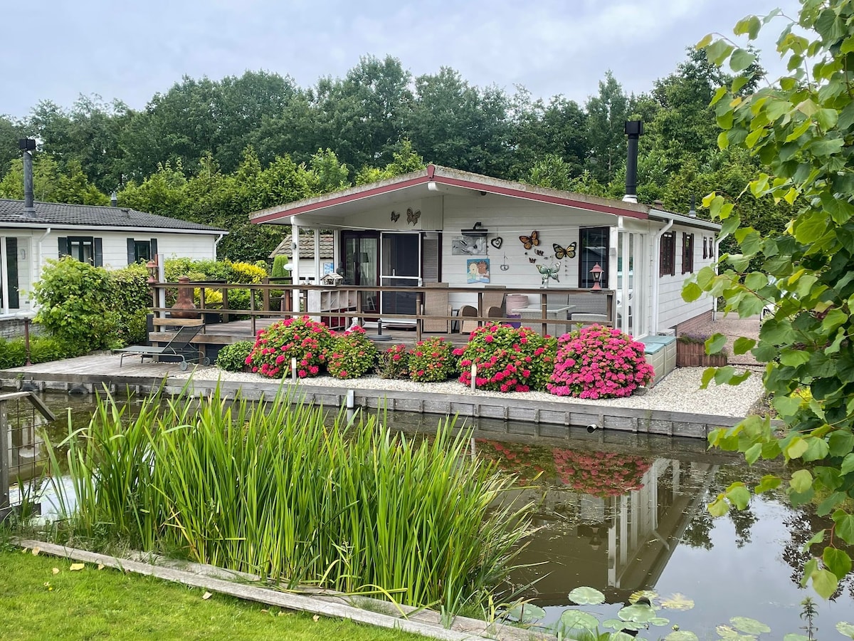 Weidehuisje met veranda aan het water!