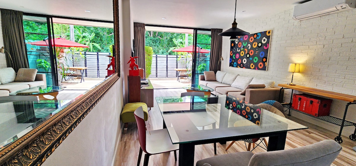Plassert i nærheten av den rolige Choeng Mon-stranden med bare fire minutters kjøretur (21 minutters gange). Et prisbelønt yogaretreat ligger tre minutter unna med bil (ni minutters gange), og et thai-boksingstudio ligger ett minutt unna med bil (åtte minutters gange). Den nærmeste restauranten ligger kun 100 meter unna. Denne luksuriøse leiligheten ligger på 163 kvm over 2,5 etasjer, og har tilgang til to svømmebasseng, et fullt utstyrt treningsstudio og sømløs trådløst nettverk i hele eiendommen. Bestill nå og nyt den perfekte ferien, hvor eleganse møter bekvemmelighet!