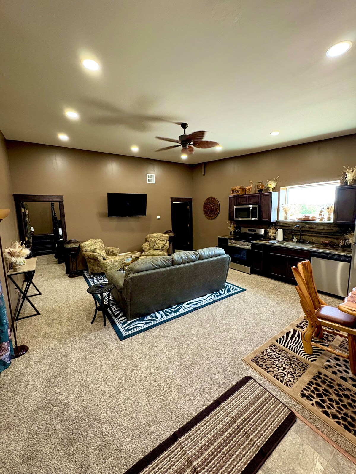 Praktisk beliggenhet i byen. Nyt det hvælvede stueområdet, ett soverom, ett bad, villaen er dekorert i en industriell stil, fra gjenvunnede gulv fra godsvogner, benkeplater i tre med stålkanter til skyvedører. Alt du trenger for å gjøre oppholdet ditt i Sulphur så hyggelig som mulig til en budsjettvennlig pris. Du er i nærheten av Chickasaw Recreation (Platt National Park) området, en unik sentrum, kunstsentre og kasinoer, samt flere fine restauranter.