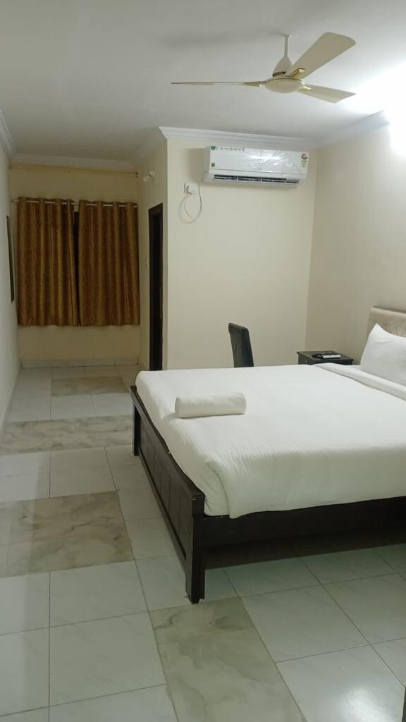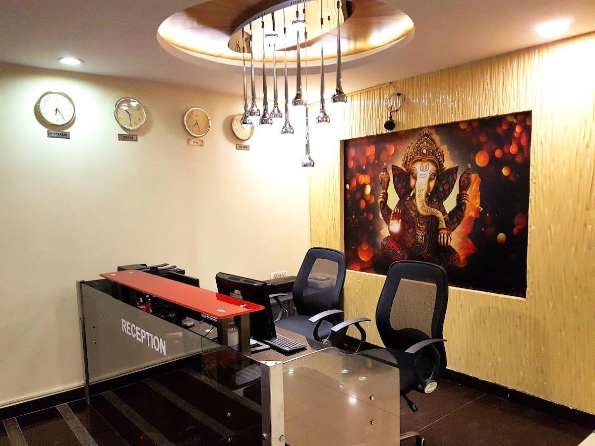 Opplev luksus og komfort i Executive-suiten vår i Hyderabad, perfekt for forretningsreisende eller par som ønsker et førsteklasses opphold. Denne elegant innredede suiten har et romslig soverom, moderne eget bad, raskt trådløst nettverk, klimaanlegg og et eget skrivebord. Den ligger i et førsteklasses område med enkel tilgang til IT-huber, kjøpesentre og restauranter, og tilbyr både bekvemmelighet og klasse.