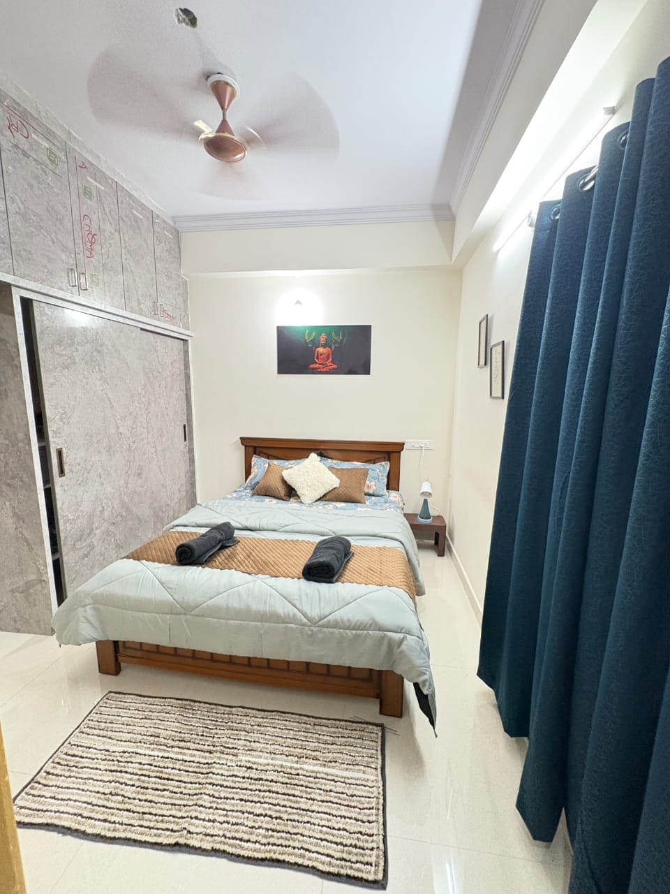 Velkommen til ditt andre hjem! Denne romslige 1BHK tilbyr et lyst, luftig oppholdsrom, et koselig soverom med en queensize-seng og et fullt utstyrt kjøkken. Perfekt for alenereisende, par eller fjernarbeidere. Nyt raskt trådløst nettverk, smart-TV og rikelig med plass til å slappe av eller jobbe. Praktisk plassert i nærheten av restauranter, kafeer og transport. Enten du blir kort eller lenge, venter komfort og bekvemmelighet!