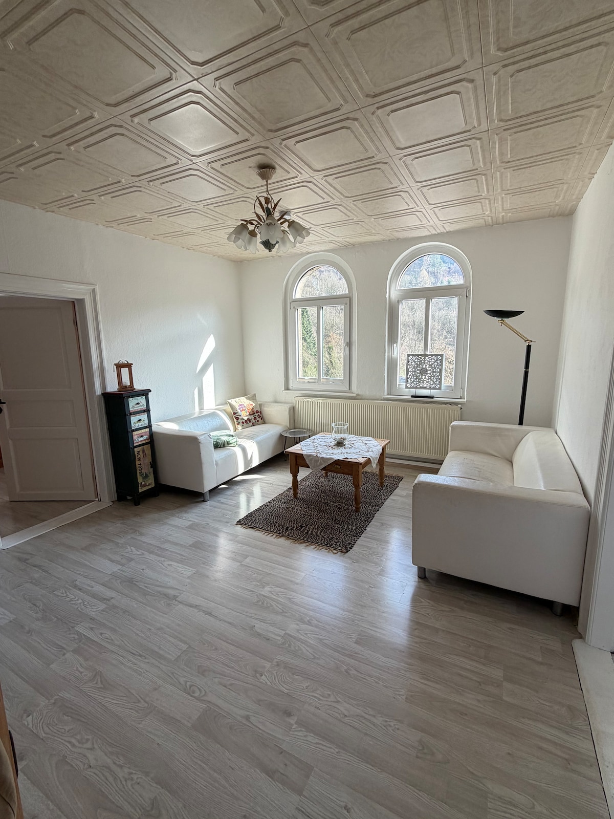 vi bor i nasjonalparken Sächsische Schweiz på en 200 år gammel gård i Bielatal. Gården ligger 400 meter over havet, herfra har du en fantastisk utsikt over Elbesandsteinsfjellene. Den midterste delen av den gamle fjøset med høylåven har vi kjærlig bygget om til en ferieleilighet. Den er en del av den store restaurerte 4-sidige gården.
