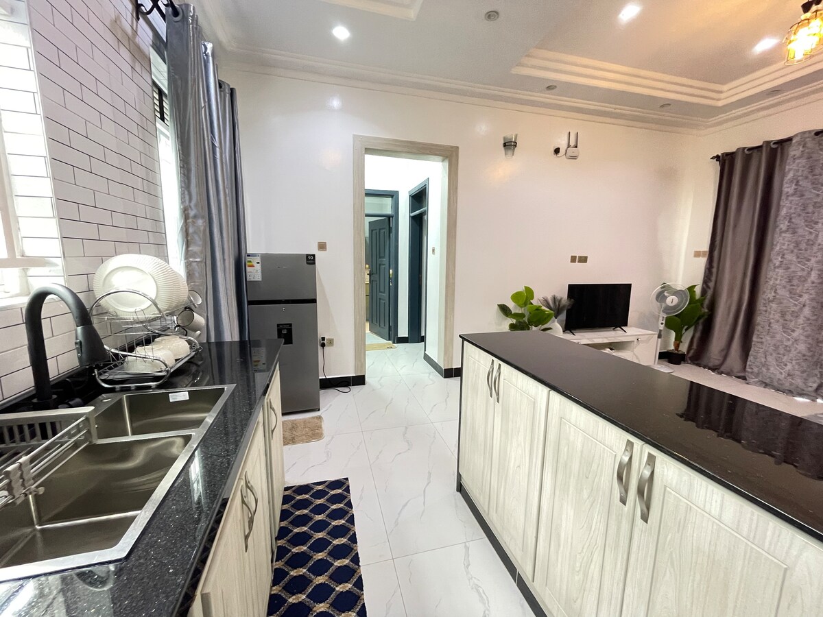 Flykt til en rolig dobbel etasje med fire soverom i Akright Citys prestisjefylte enklave. Perfekt for familieturer og sammenkomster med venner. Slapp av i en solbelyst stue, gå ut på en av to balkonger for utsikt mot solnedgangen, trekk deg tilbake til en luksuriøs hovedsuite med høyhastighets internett Din bekvemmelighet er avgjørende. Øst-tilgang til Voice Mall, eller en kort kjøretur til Victoria Mall og bredden av Lake Victoria. Med flyplassen minutter unna er det en ideell base for enhver tur.