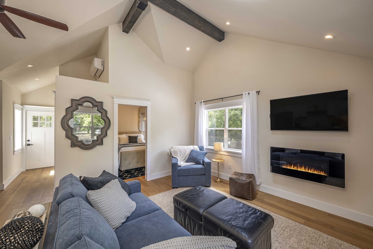 Please be advised: There is an active construction project close to this residence. This private 1-bedroom, 1-bathroom space is just a 15-minute walk to Sanders Beach, downtown Coeur d'Alene, and great hiking. It features a full kitchen, balcony, and secure parking. Relax on the outdoor patio with a grill, fireplace, and hot tub. Centrally located with quick access to local events, it's perfect for 1-4 guests seeking both comfort and convenience in a modern, peaceful setting.