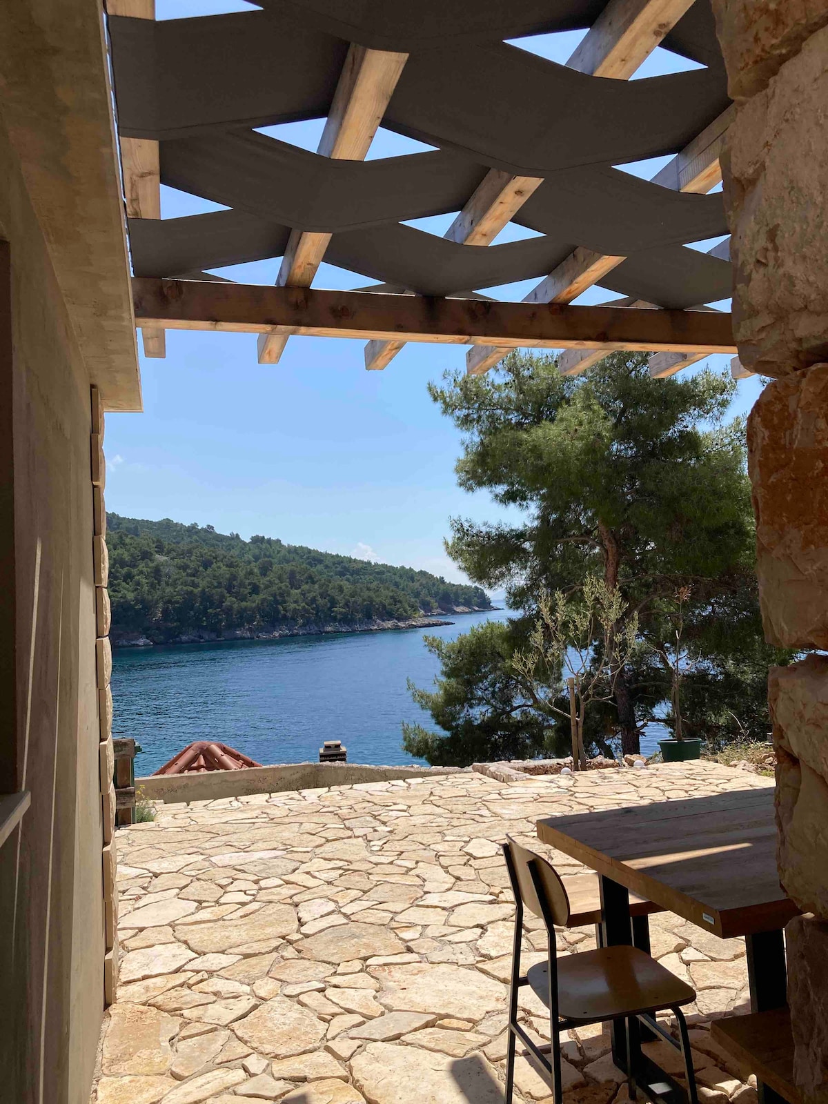 Take it easy at this unique and tranquil getaway. Enjoy the autumn mild weather and the warm sea in our comfortable guest house among olive trees and Mediterranean gardens. Several sunbathing terraces lead directly to the azure waters of the Adriatic Sea and mesmerizing views of island Lastovo. The guesthouse consists of a bedroom with en suite bathroom, big kitchen, terrace and a covered terrace with BBQ. Parking on premisses is included.
