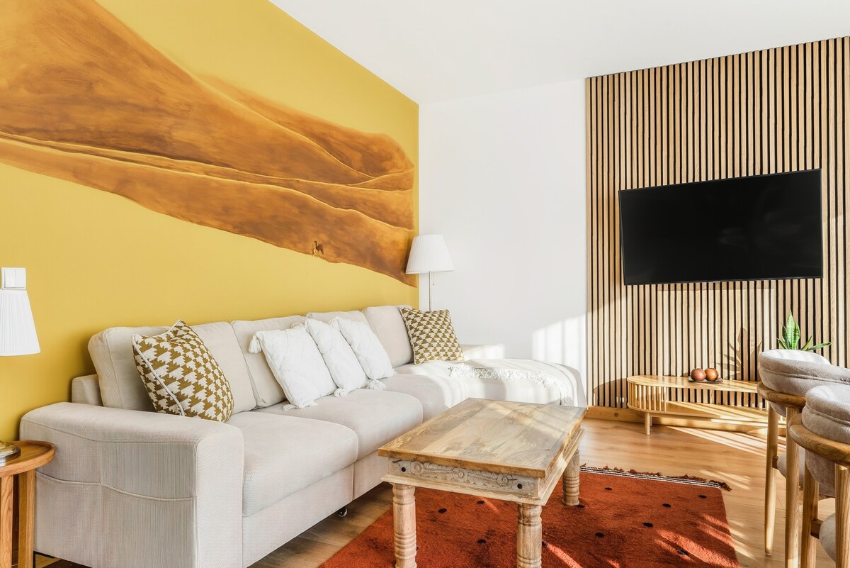 KAFFELEILIGHETEN er et koselig og stilig innredet sted hvor mange gjester vil føle seg som i en fjellhytte. Dette inntrykket fremheves av den store mengden tre som brukes til å fullføre dette sjarmerende og stilige interiøret. En ekstra fordel ved stedet er en lys balkong med utsikt over fjellet og en varm stue utstyrt med peis. Leiligheten ligger i en rolig del av byen, borte fra travelheten og støyen, men bare noen minutter med bil fra sentrum.