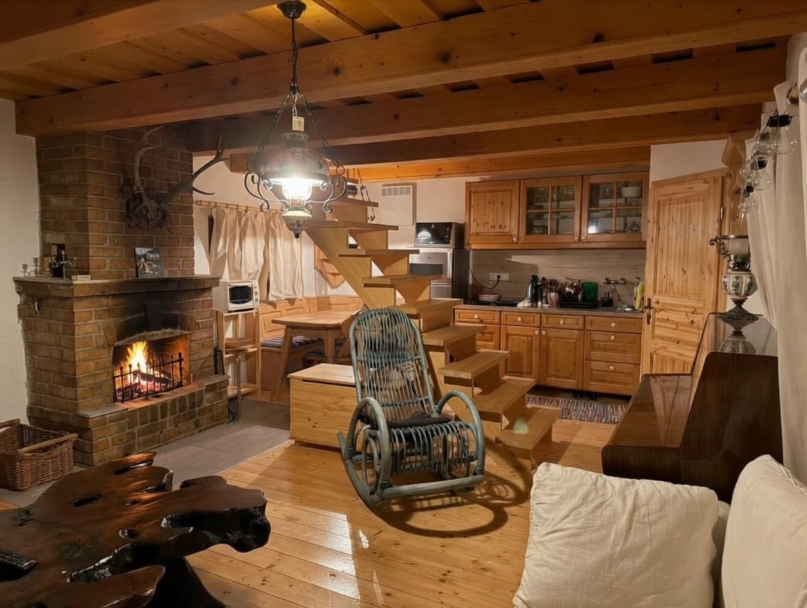 Chata i Čingov, Slovak Paradise, har to etasjer med spiseplass i første etasje, fullt utstyrt kjøkken, også i første etasje er det et bad med dusj. Sofagruppen inneholder en sammenleggbar dobbeltseng. Andre etasje har to enkeltsenger i tillegg til en køye med nedre nivå som kan trekkes ut til en dobbeltseng. Gå ut på balkongen for å se Hornad-elven som strømmer gjennom Slovak Paradise nasjonalpark. Ute er det et overdekket spiseområde og en bålplass.