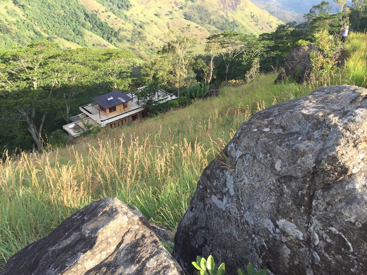 Bo i vårt miljøvennlige hus i Golcondas tåkete åser, med privat fossefall, naturlig steinbasseng og fjellutsikt. Perfekt for naturelskere og eventyrere! Høydepunkter: Din egen fosse og naturlige svømmebasseng Hyggelig lesekrok med utsikt over skogen Enkel tilgang til Upper Diyaluma og Bambarakanda Falls Utforskning og turstier ved elven Opplev bærekraftig luksus i dette håndlagde feriestedet – bestill naturoppholdet ditt i dag!
