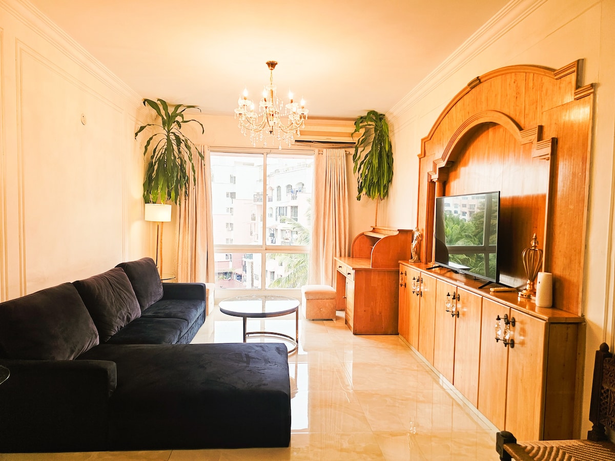 Velkommen til vår nybygde, romslige 2BHK-leilighet, ideell for par og familier som søker komfort og bekvemmelighet. Hvert soverom har queensize-senger og myke ortopediske madrasser og klimaanlegg for en god natts søvn. Slapp av i den store stuen med en 32 tommers smart-TV, lynraskt trådløst nettverk og døgnåpen strømforsyning Kommer med to rene bad med basisartikler. Det fullt utstyrte kjøkkenet har grunnleggende ingredienser, apparater av høy kvalitet og servise for ditt kulinariske eventyr