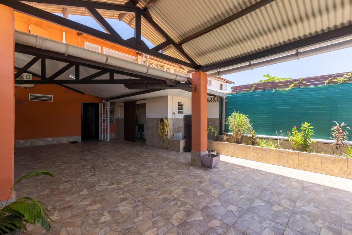 T2 på 40M2 fullt møblert, utstyrt og med klimaanlegg, ligger i en privat og sikret bolig. Trådløst Internett / CANAL+ / NETFLIX, privat terrasse på 20 m2 i andre etasje, sengetøy, rengjøring. Terrassen i første etasje, bassenget og baren/grill/pizzaovnen er fellesområder i boligen som du har tilgang til. Priser kan diskuteres for lengre opphold. En restaurering av terrassen er planlagt, treverket er utsatt for mye i tropisk atmosfære...