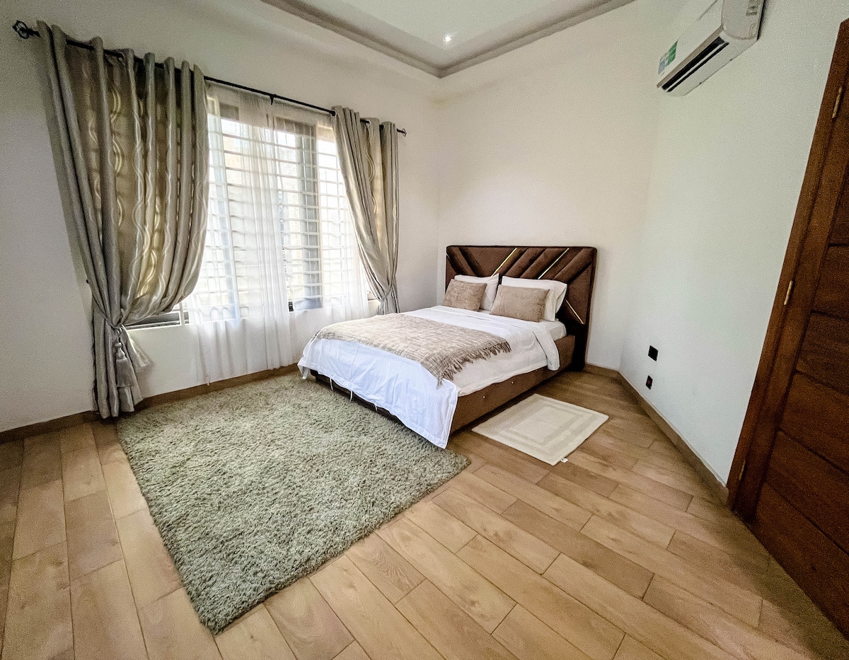 Flykt til det rolige huset vårt med tre soverom i Lakeside i Ghana! Perfekt for familier eller grupper. Hvert rom med komfortable senger og egne bad. Fullt utstyrt kjøkken med moderne apparater. Flatskjerm-TV og trådløst nettverk for dine underholdningsbehov. Nyt den romslige hagen rundt huset, ideelt for barn å leke. I nærheten av lokale attraksjoner, shopping og spisesteder, og mindre enn fem minutter med bil til Lakeside Marina Park. Drevet av solenergi og strøm, så opplev aldri strømbrudd.