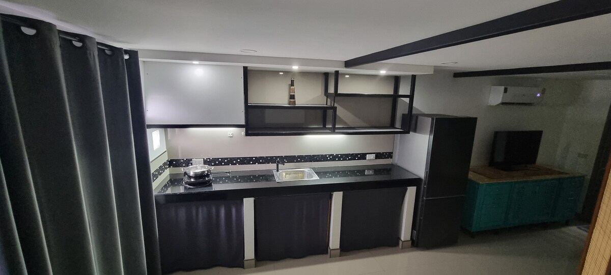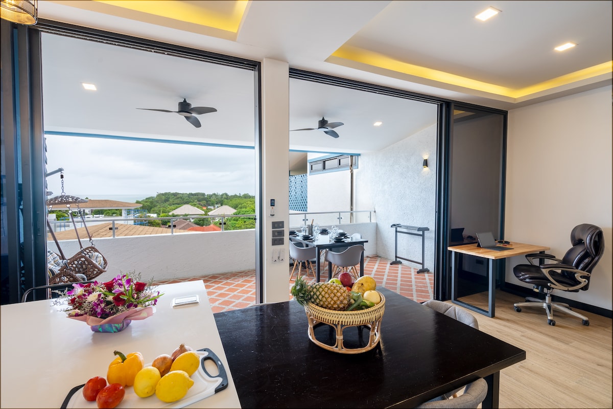 Opplev ekstraordinær avslapning i den fantastiske toppleiligheten vår i fjerde etasje i Krabi. Denne private, selvstendige boligen tilbyr en forfriskende kystatmosfære, og blander moderne luksus med tropisk sjarm – perfekt for romantikk eller rolige ferier. Du kommer til å elske det private bassenget med jacuzzi på balkongen din, og slappe av i den komfortable stuen. Nyt matlaging på det stilige, moderne kjøkkenet, ideelt for selvbetjening eller lokal mat. Denne romslige toppleiligheten blander komfort og avslapning på en perfekt måte.