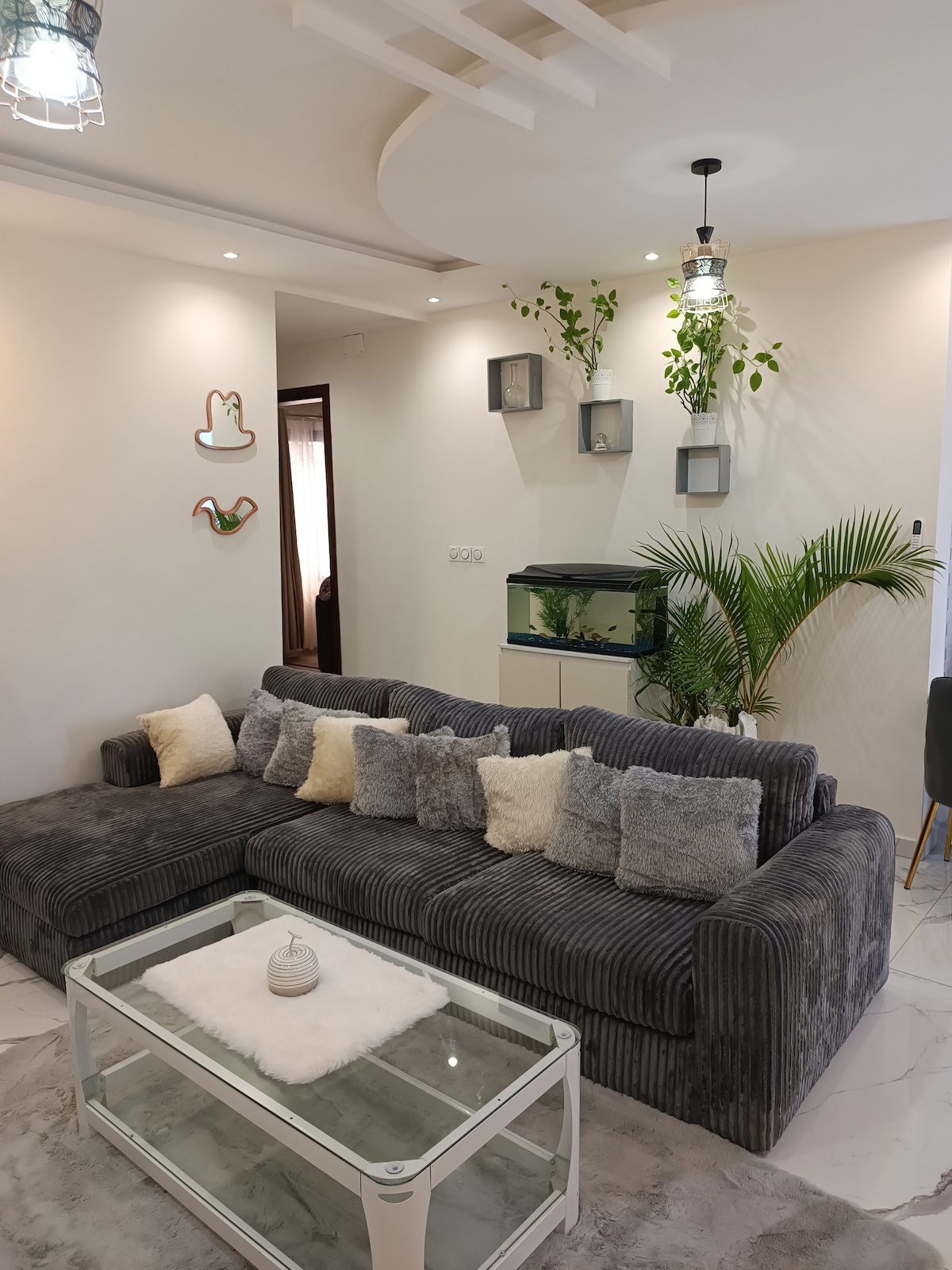 Denne moderne duplexen med tre soverom er designet for eleganse og avslapning, og tilbyr en fantastisk stue med glassvegger som fyller stedet med naturlig lys og gir en uhindret utsikt over omgivelsene. – gratis høyhastighetsinternett – uavbrutt strømforsyning for enkelhets skyld - takterrasse – sikkerhetsovervåking døgnet rundt Kostnadsfri transport i byen – vi tilbyr et privat kjøretøy som kjører deg hvor som helst i byen, noe som gjør oppholdet ditt stressfritt og hyggelig.