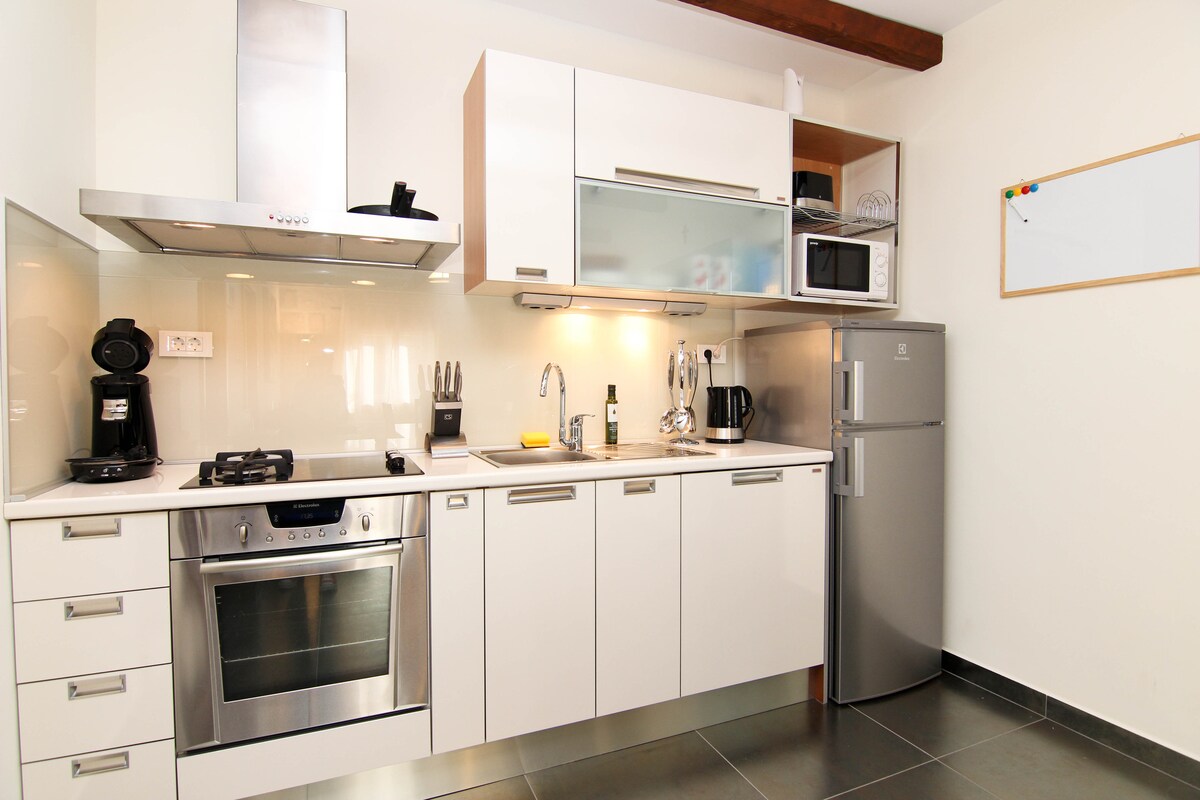 Moderne, stilig og fullt utstyrt leilighet med privat oppvarmet basseng i nabolaget i nabolaget. Hvis du foretrekker å leie en leilighet i nærheten av sentrum, men samtidig langt unna støy og støy og folkemengder, er stedet vårt det perfekte valget. Vi vil gjøre vårt beste for å gjøre ferien din så mye bedre som mulig.