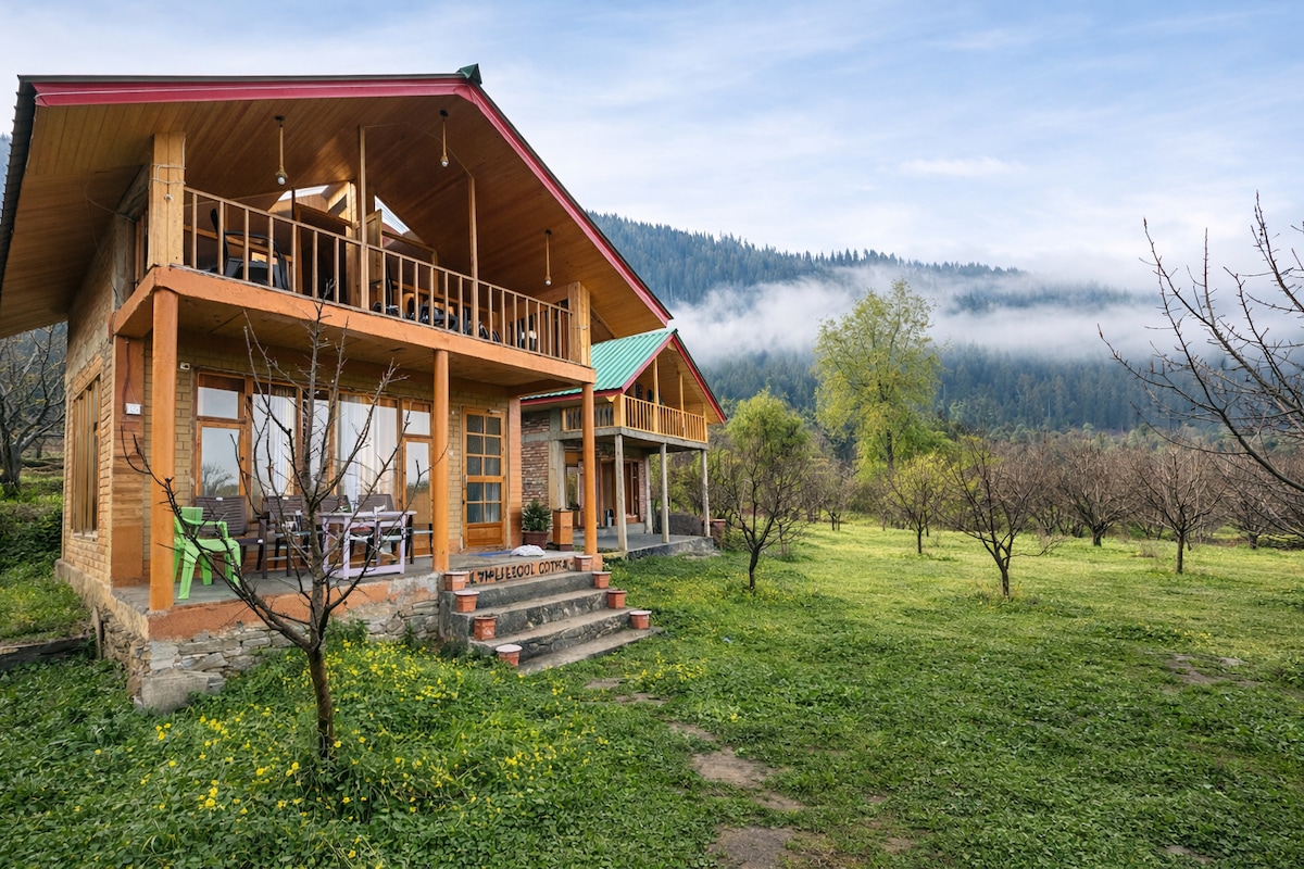 Slapp av med hele familien på dette fredelige stedet. Dette fredelige hjemmet med to soverom ligger bortgjemt i en frodig eplehage på Rangri Homestead, og tilbyr en rolig flukt fra folkemengdene i Manali. Pust inn frisk fjelluft fra din private balkong eller slapp av i den rolige hagen vår. Det er et trygt, koselig hjem hjemmefra hvor familien din kan komme i kontakt med naturen igjen. Perfekt for en avslappende, autentisk ferie i Himalaya. Borte fra byens folkemengde. Varmeovner, mat mot betaling.