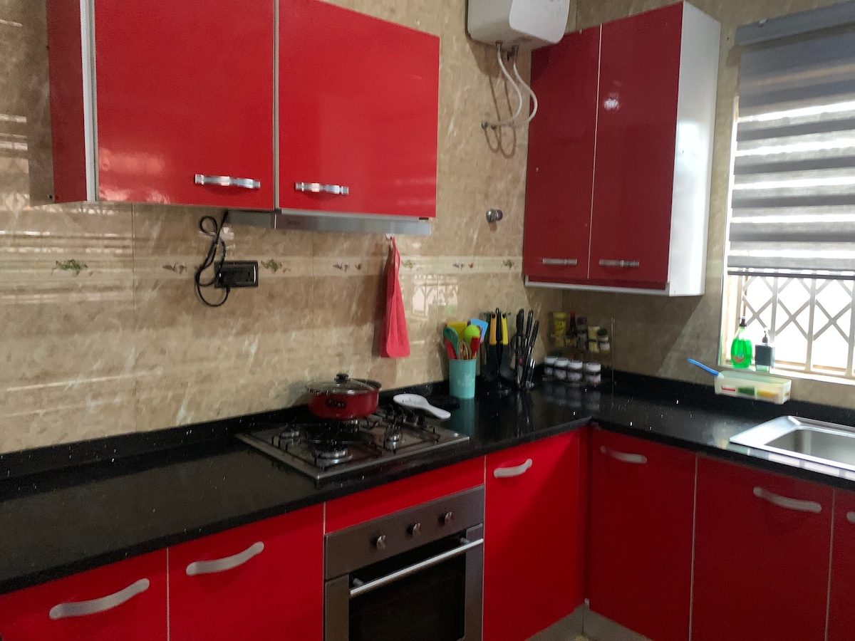 Romslig og koselig leilighet, egnet for par, forretningsreisende, feriereisende, ventere. Den koselige leiligheten vår tilbyr den perfekte blandingen av komfort og bekvemmelighet. Vi befinner oss på Apemso i Kumasi, ca. åtte minutter med bil fra KNUST-campuset og ca. syv minutter med bil fra Accras hovedvei ved Boadi-krysset. Det er et leilighetskompleks der noen av enhetene leies ut til gjester med lengre opphold.
